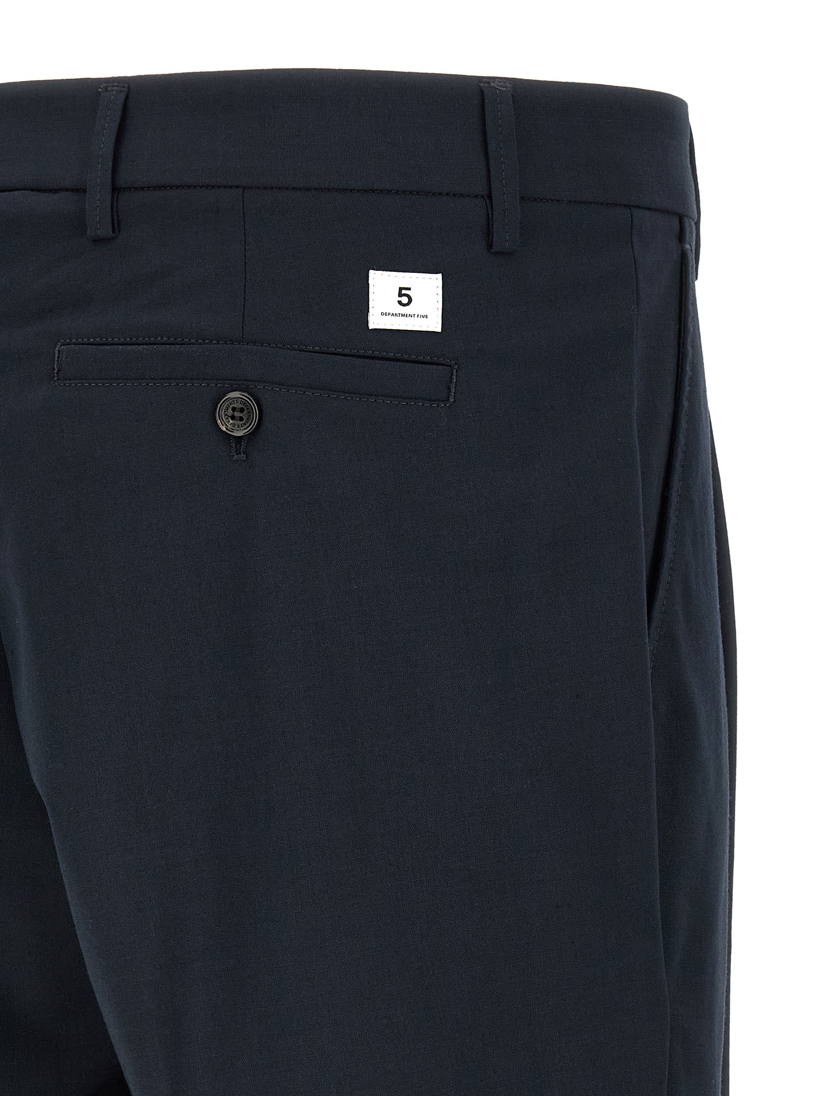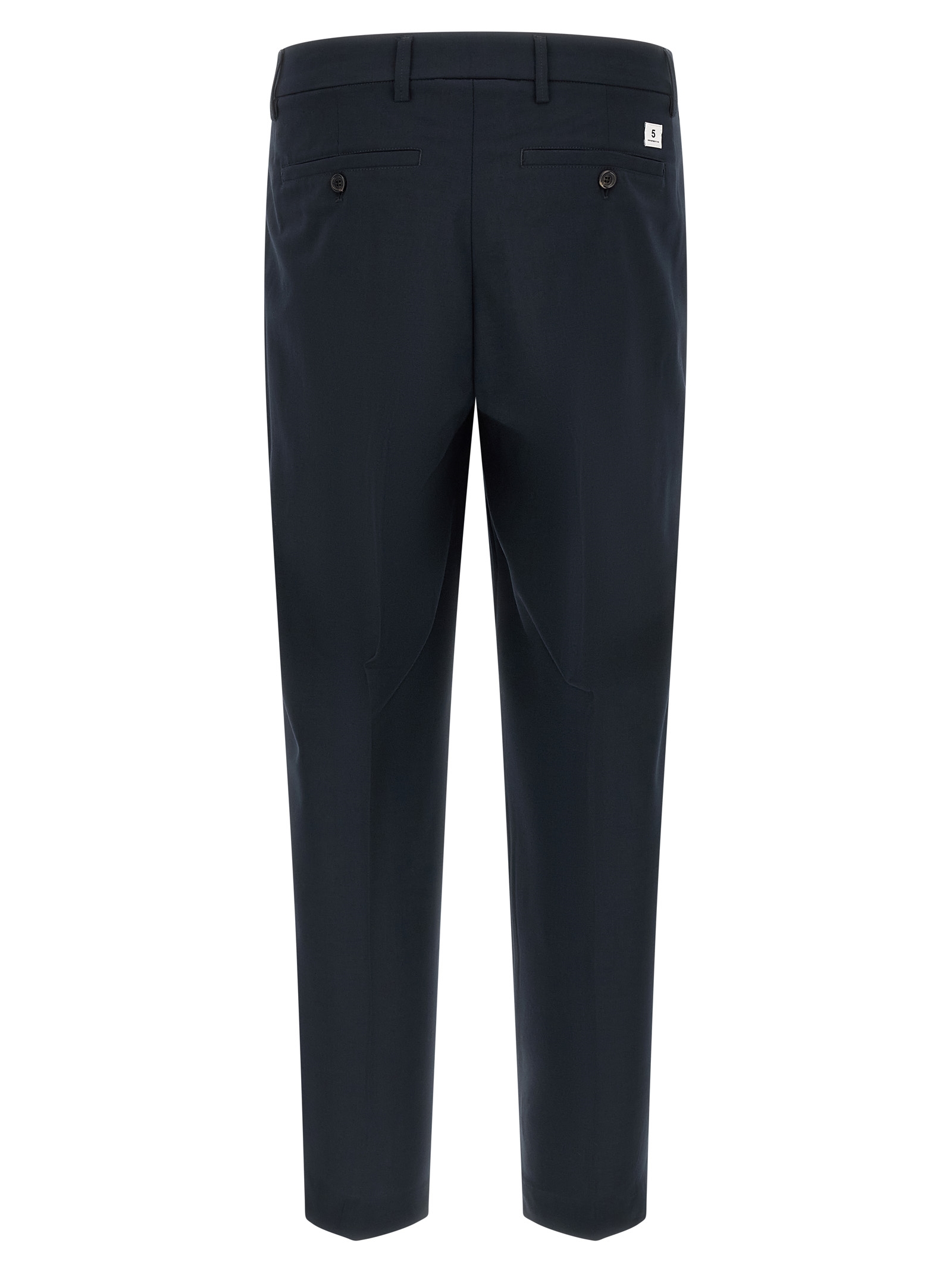 ‘Gin’ lightweight fabric pants with wide leg and front pin tucks, front zip and button closure, side welt pockets and back welt pockets with button, logo patch.