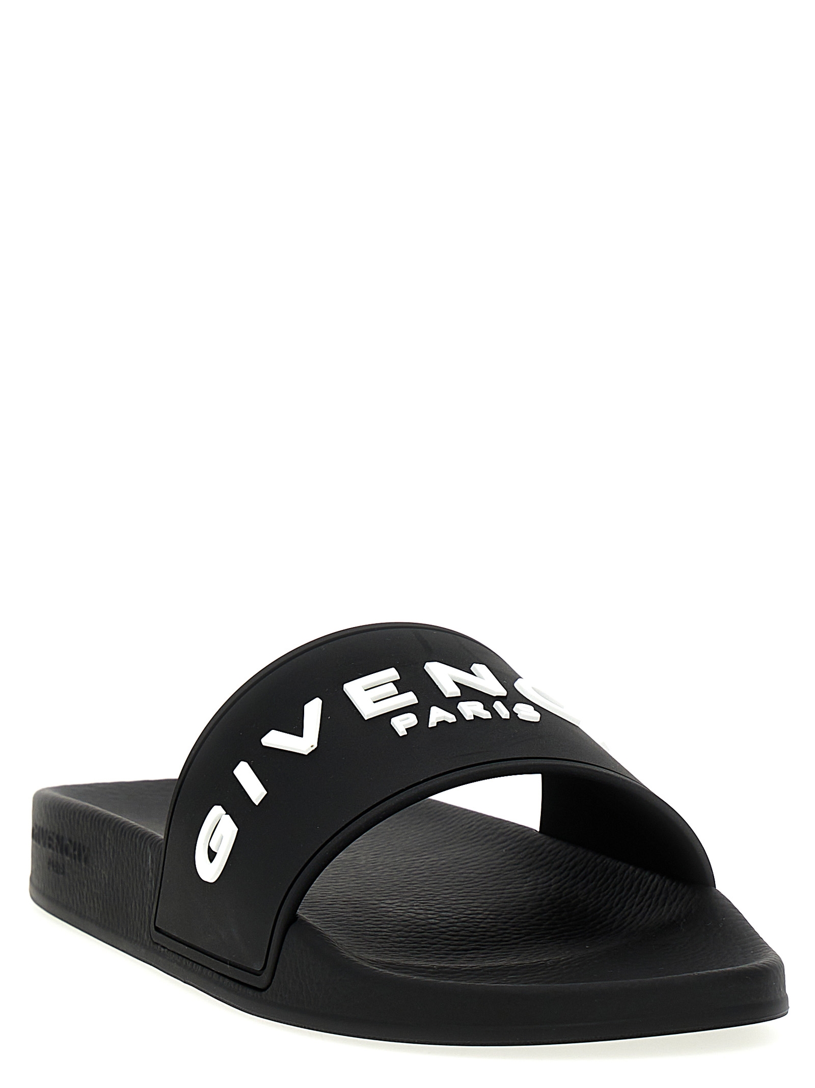 Givenchy Plage capsule rubber slide with contrasting logo.