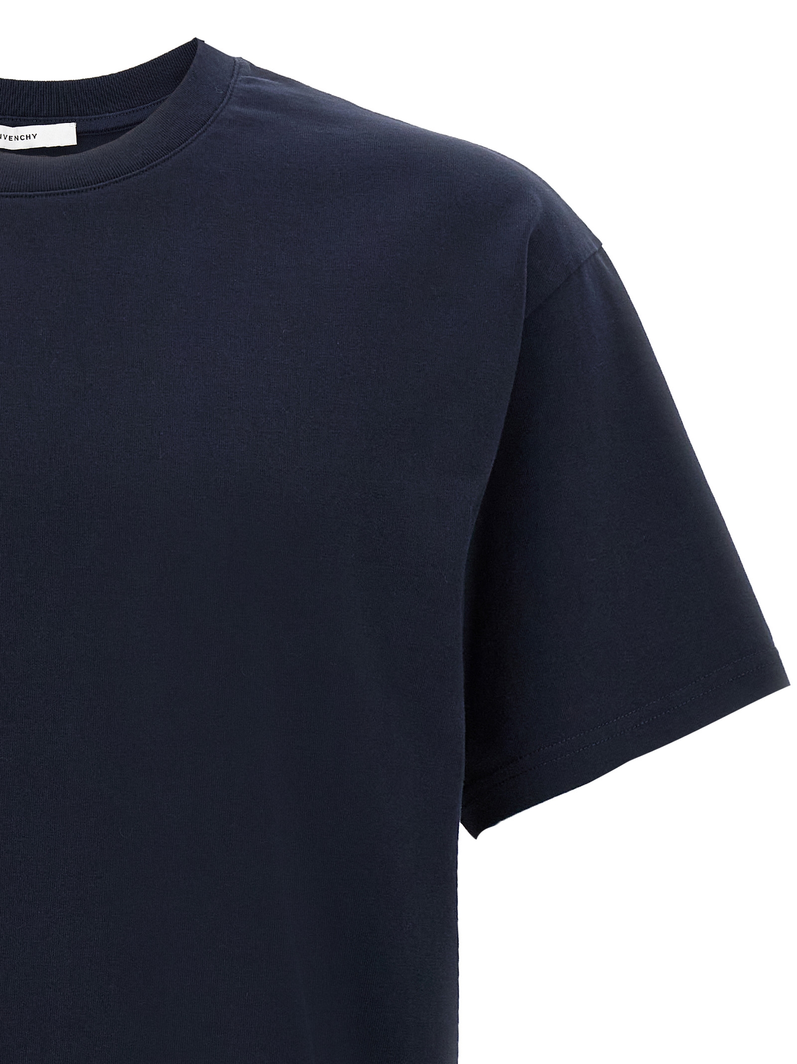 Cotton, crewneck t-shirt with ‘GIVENCHY Stamp’ print on the back, short sleeves with dropped shoulders.