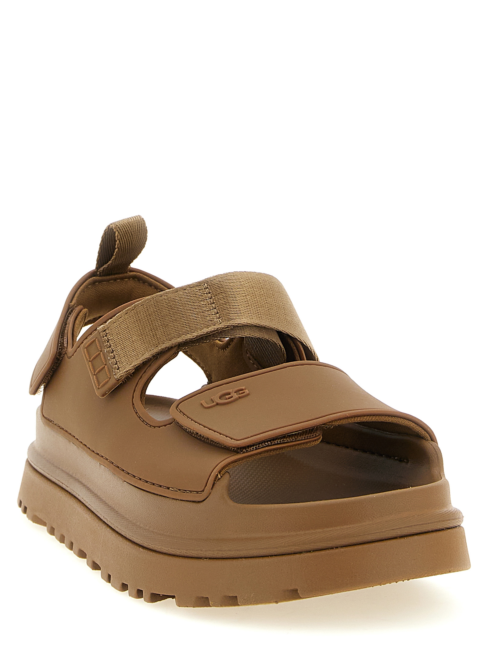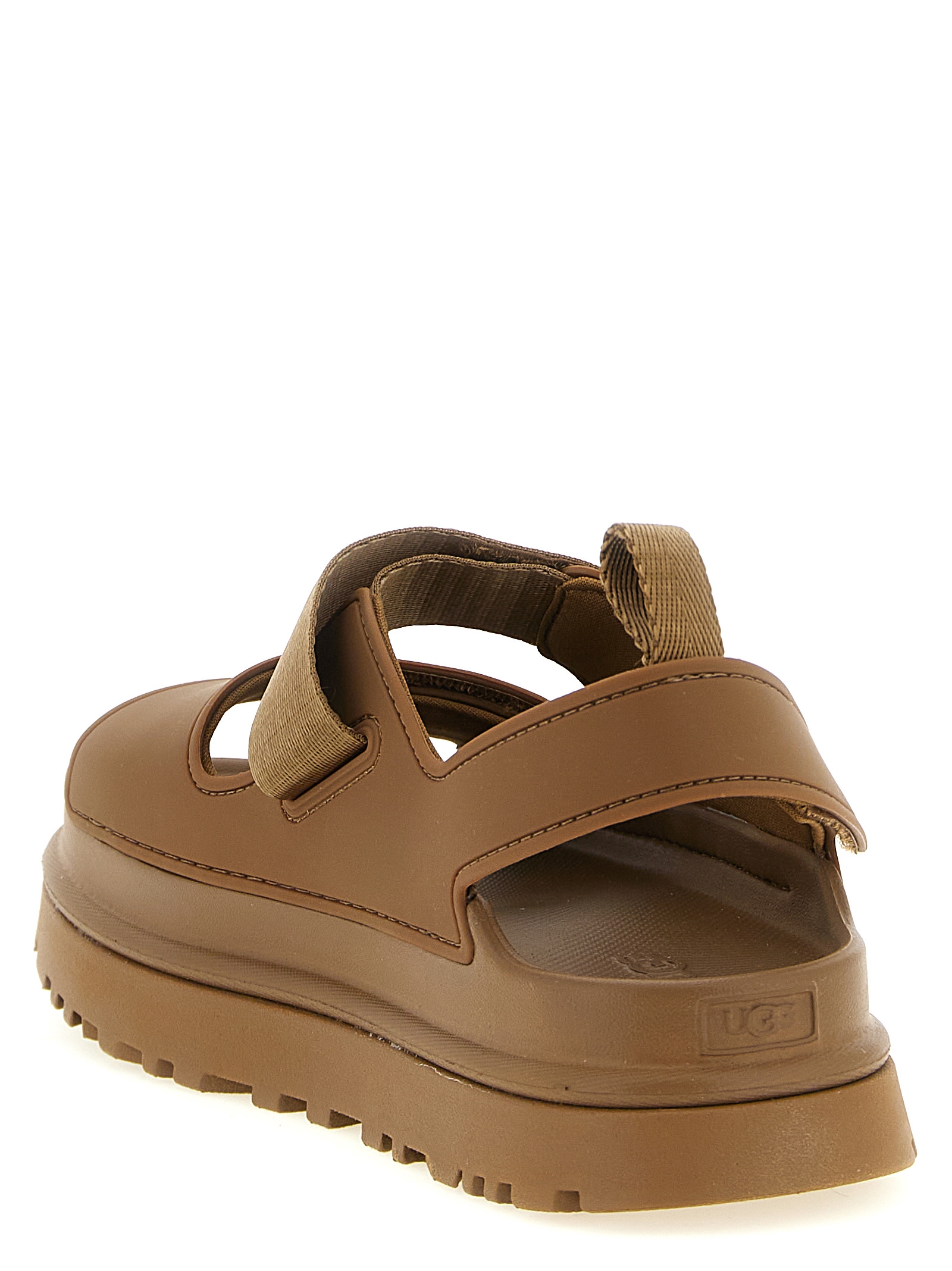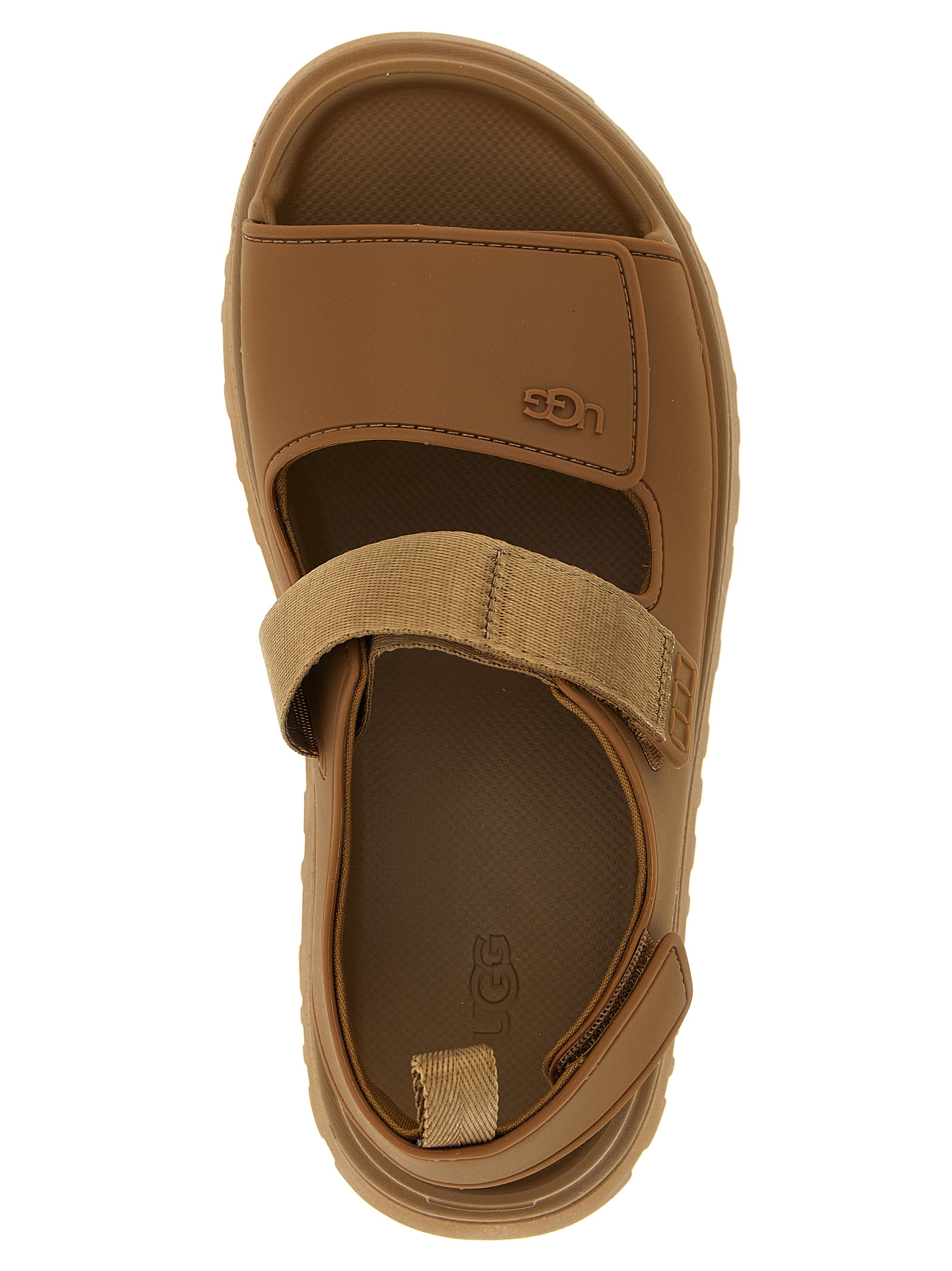 GoldenGlow’ water-repellent EVA sandals from sugar cane, fabric lining, adjustable straps with velcro, ultralight EVA sugarcane midsole and sole.