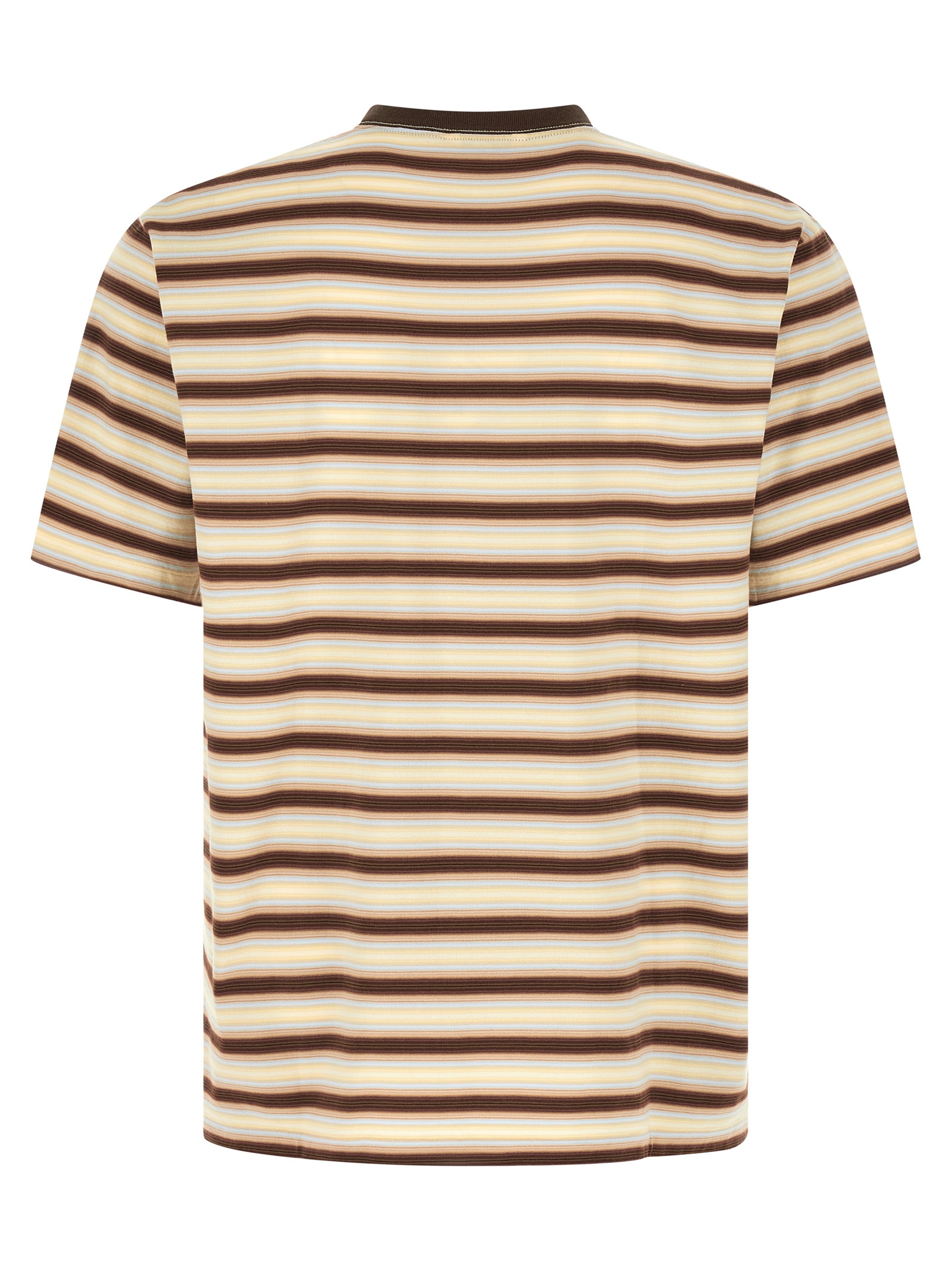 Very dense cotton jersey T-shirt with gradient striped pattern made with a palette of 23 cleverly combined colors, crew neck, short sleeves with dropped shoulders.