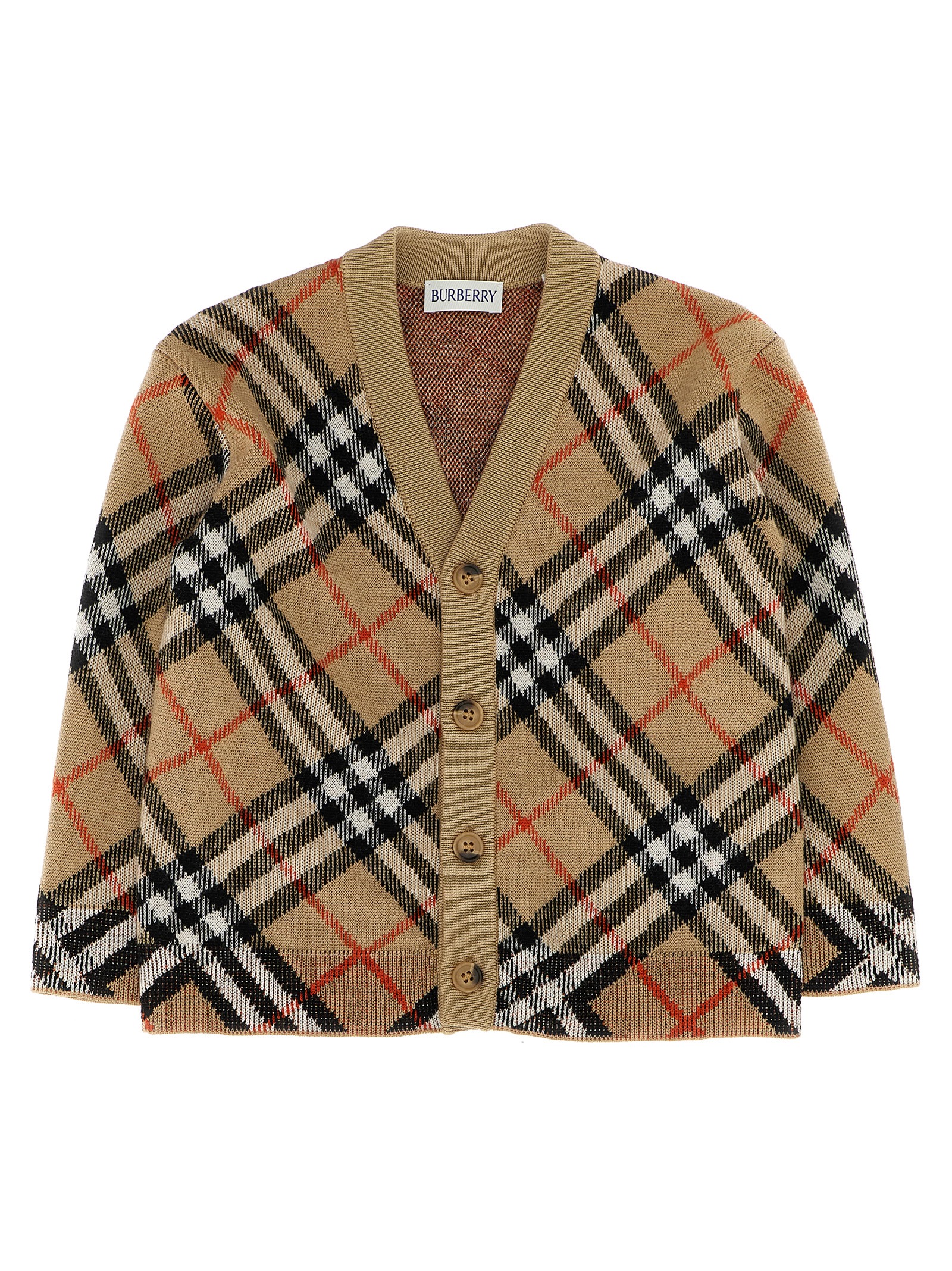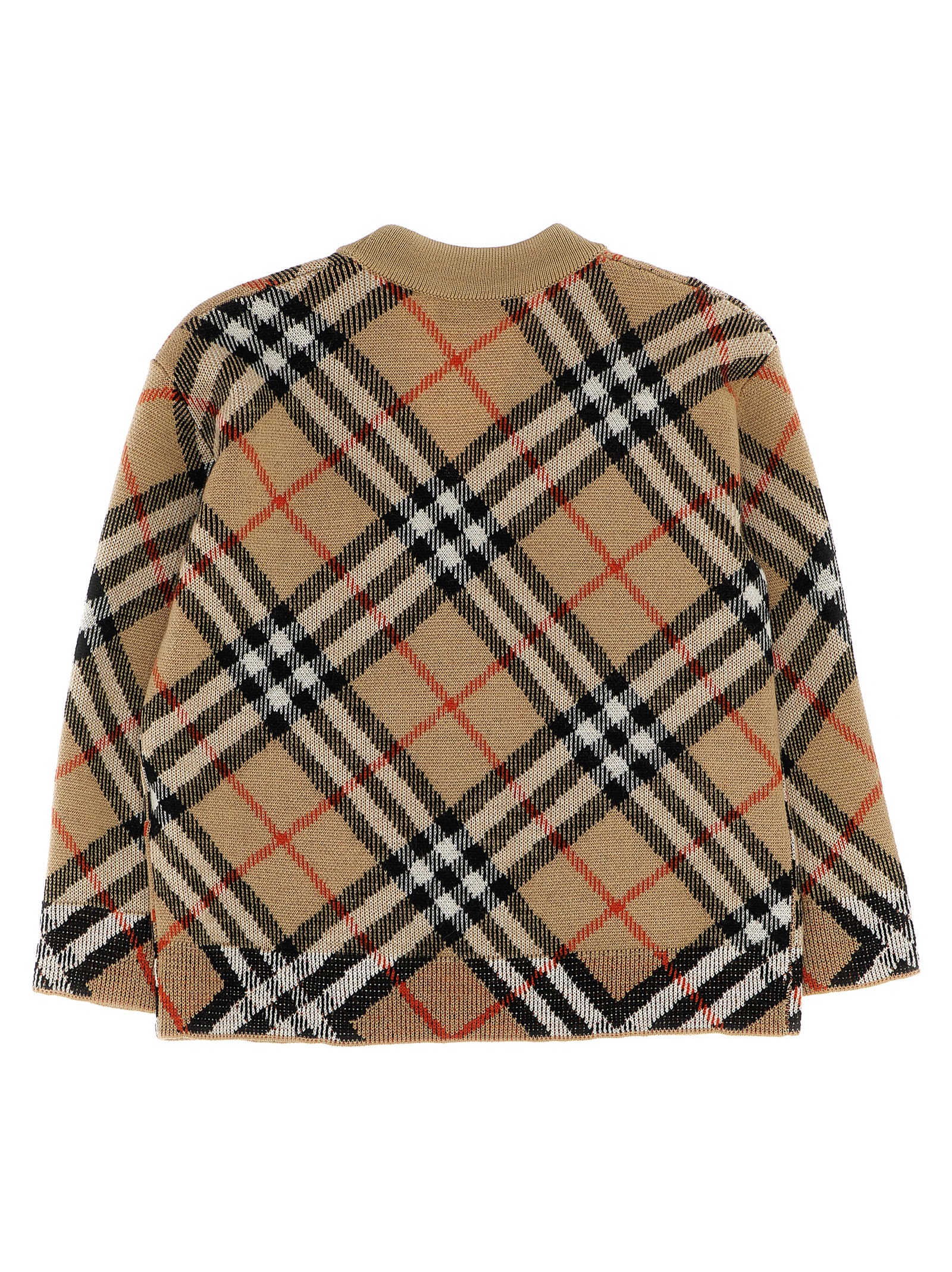 Graham’ wool cardigan with Burberry Check jacquard pattern, V-neck, front button closure, long sleeves.