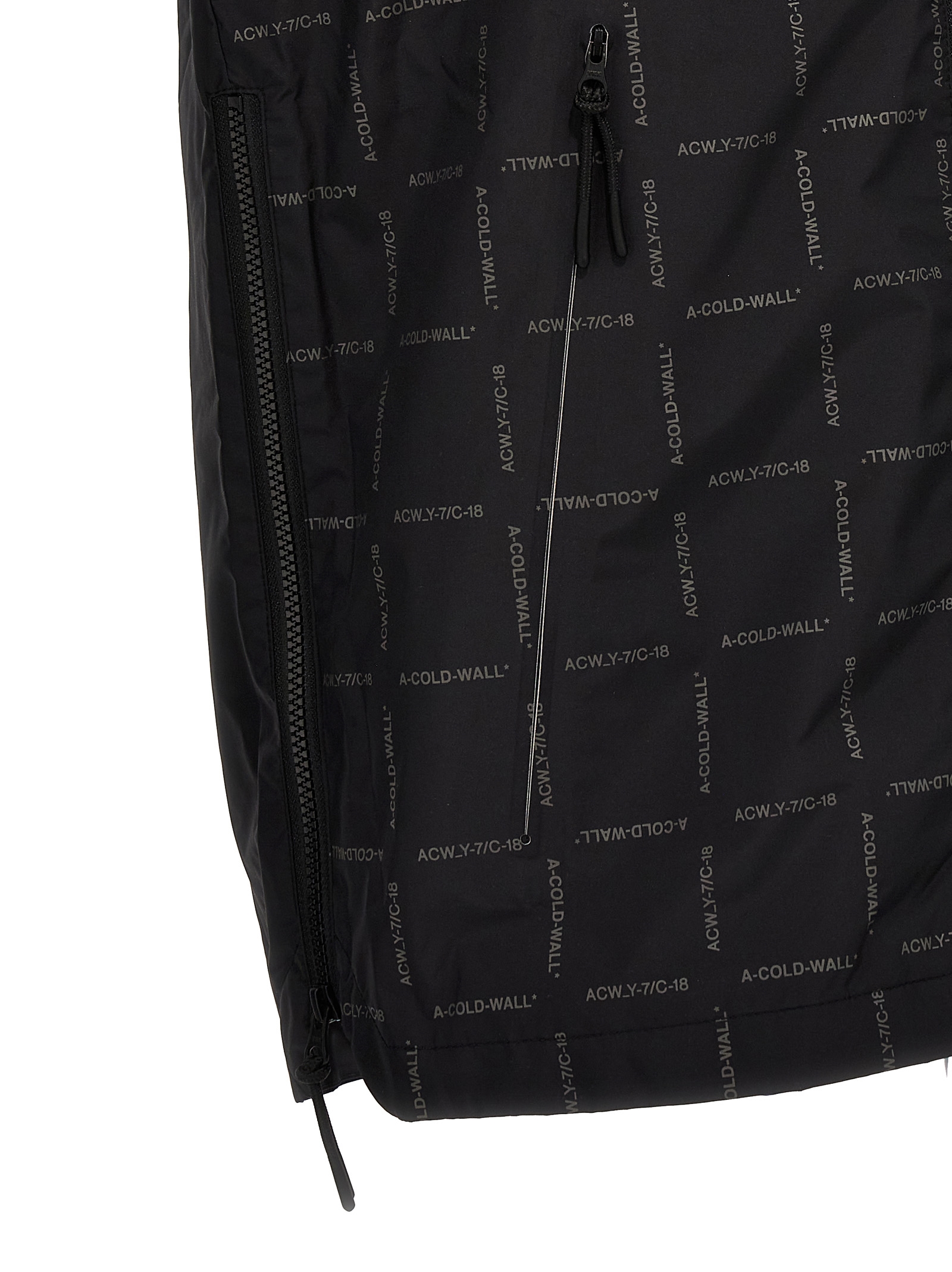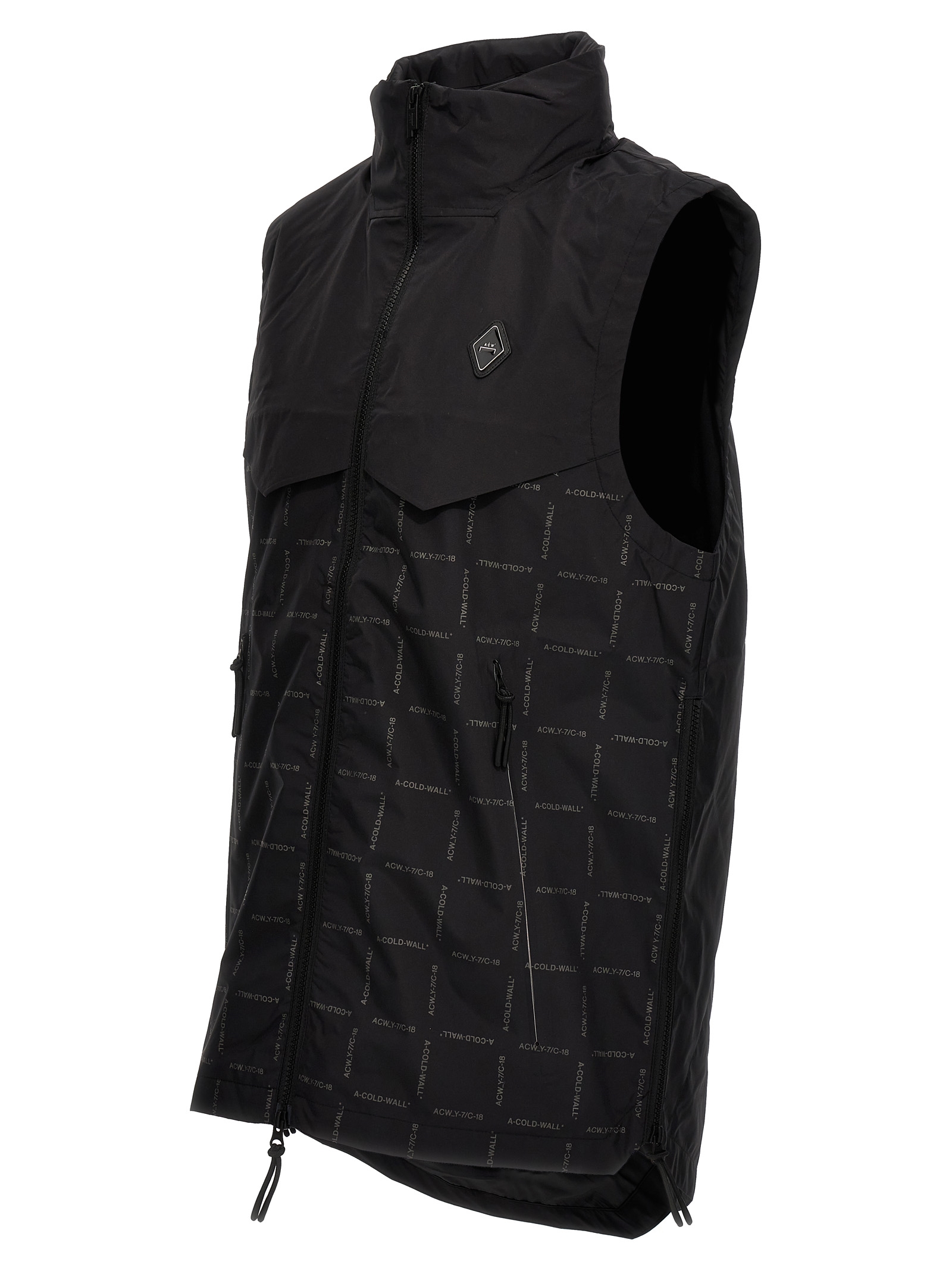 ‘Grisdale Storm’ nylon vest with logo print, zip closure, removable hood, pockets.