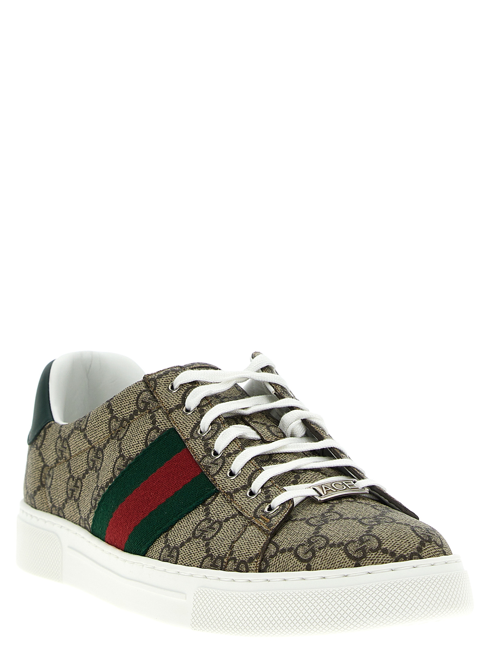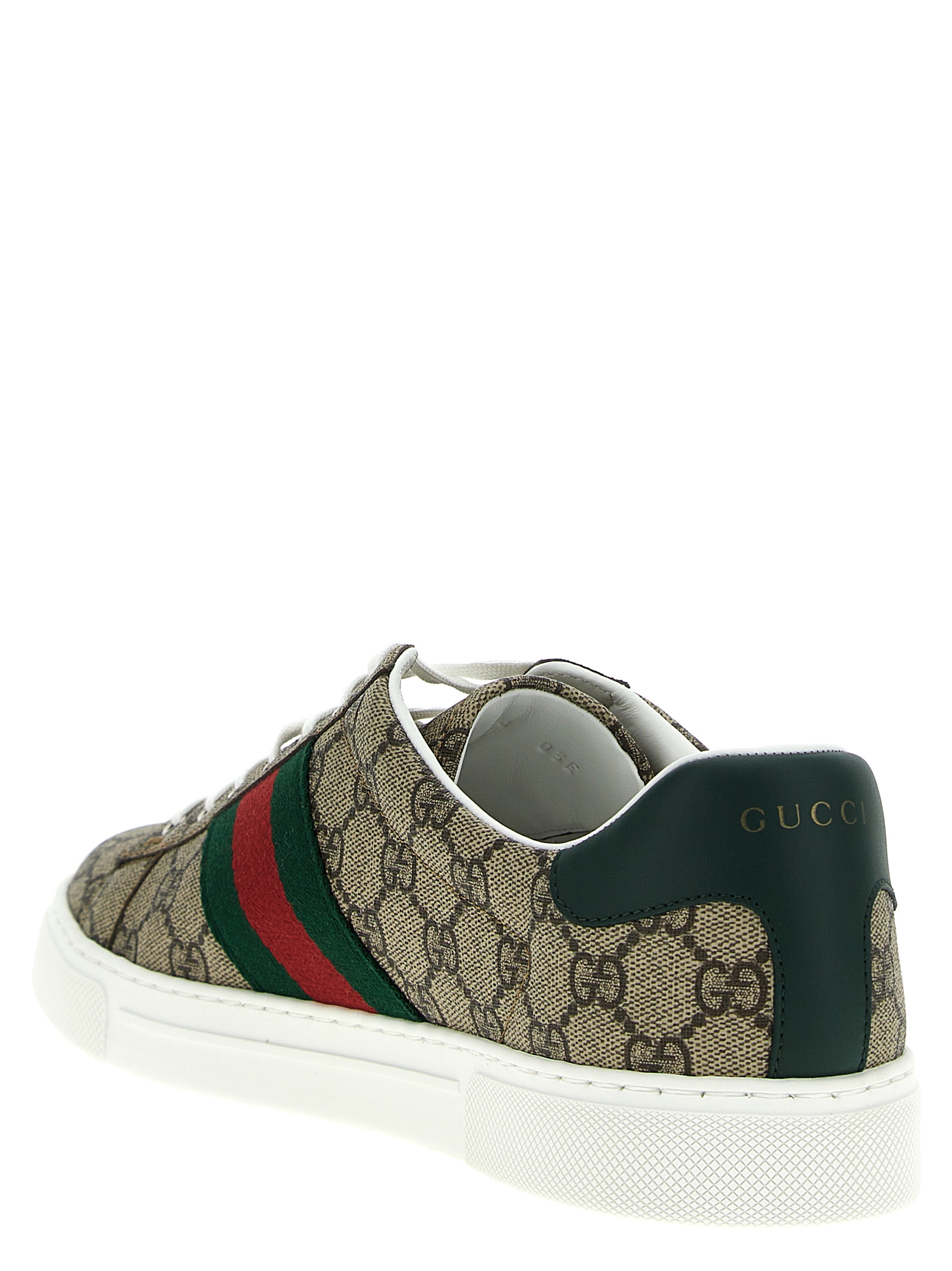 ‘Gucci Ace’ sneakers in GG Supreme fabric with Web ribbon detail, laces, rubber sole.