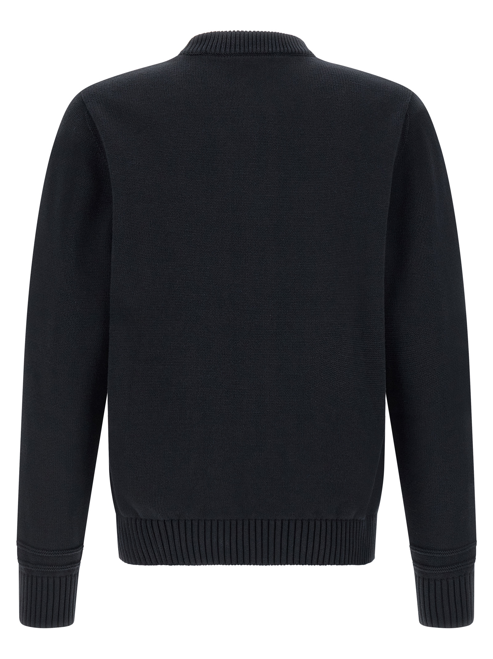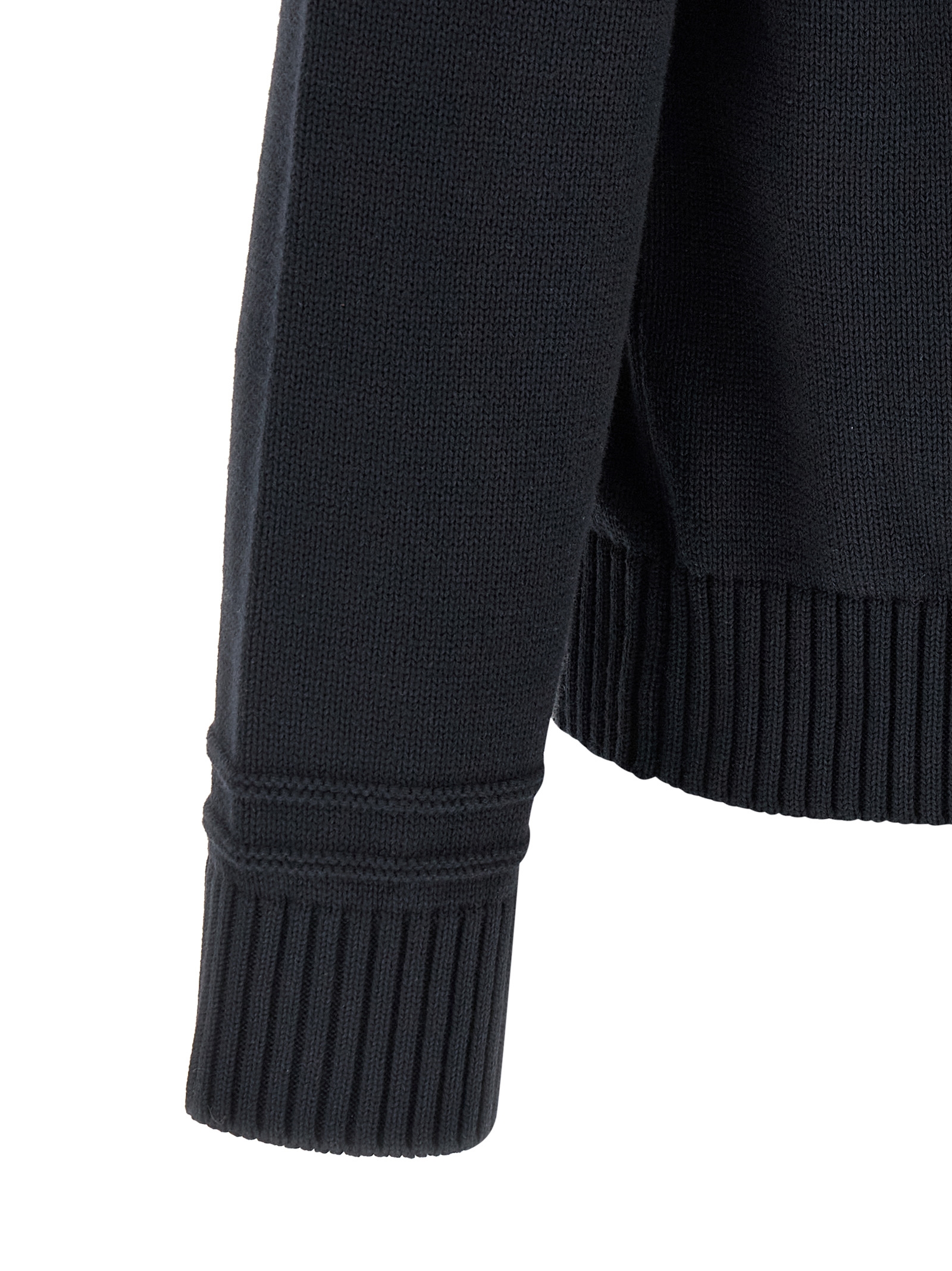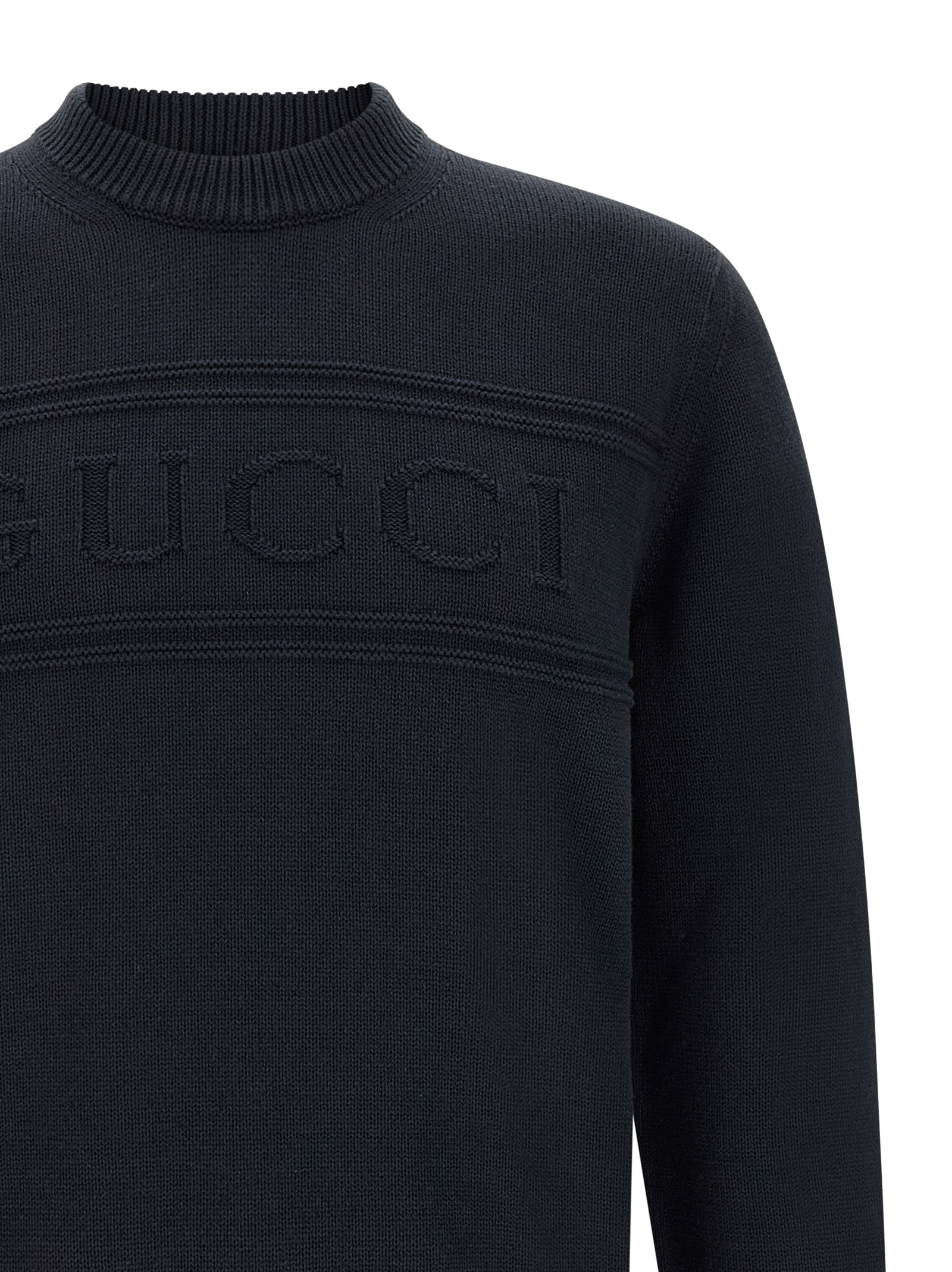 Gucci cotton and wool knit sweater with front knitted intarsia, crew neck, long cuffed sleeves.