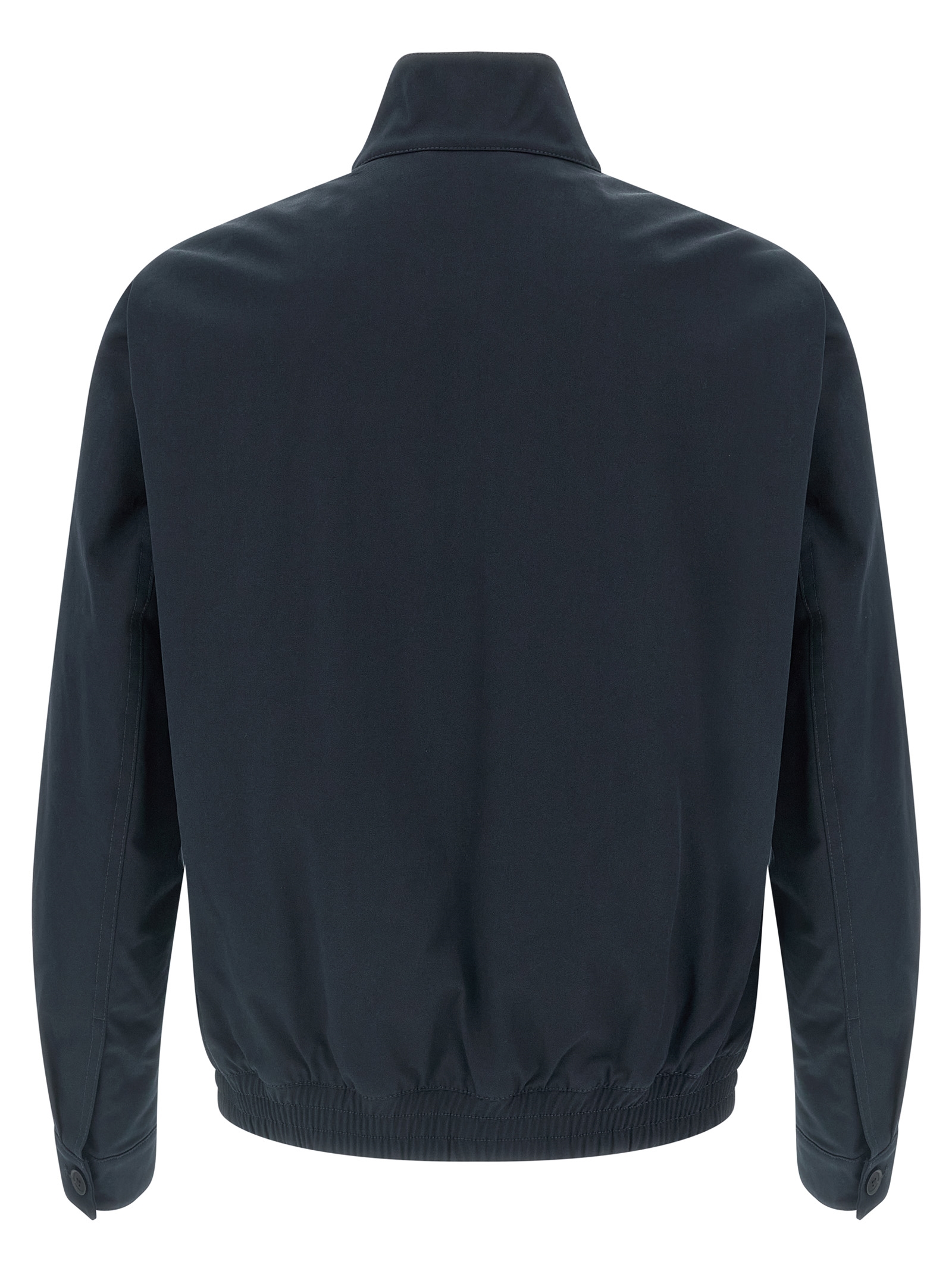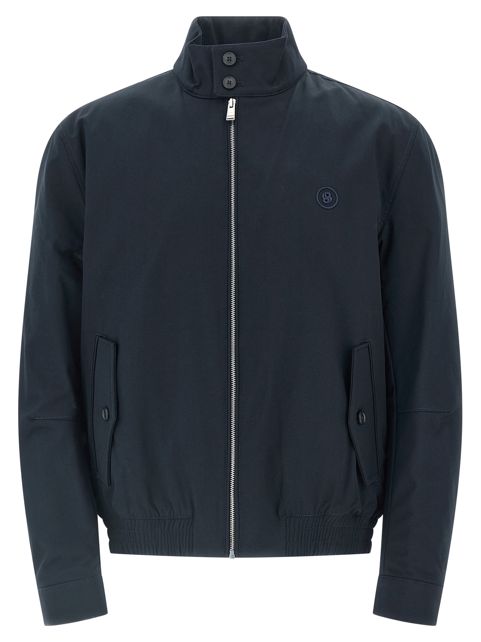 ‘H-Coiner-253’ jacket in brushed stretch cotton blend with tone-on-tone embroidered logo and front zip closure, mandarin collar with buttons, pockets, long cuffed sleeves, elastic hem.