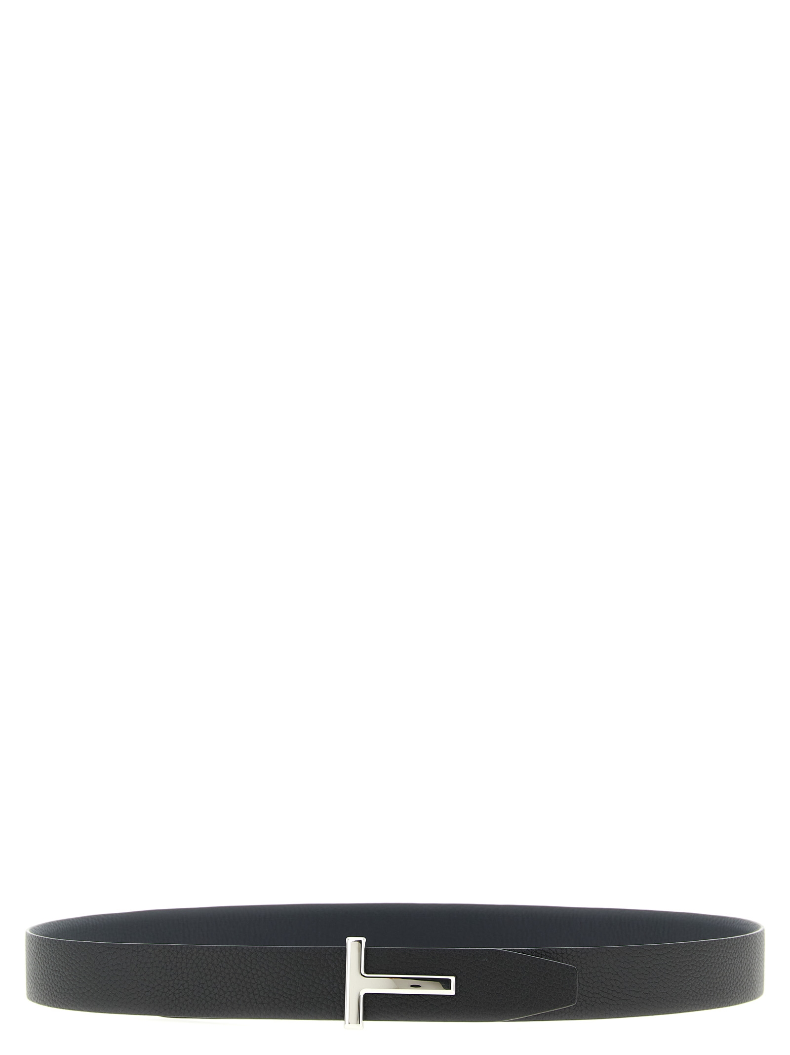 Adjustable reversible hammered leather belt with silver logo buckle.