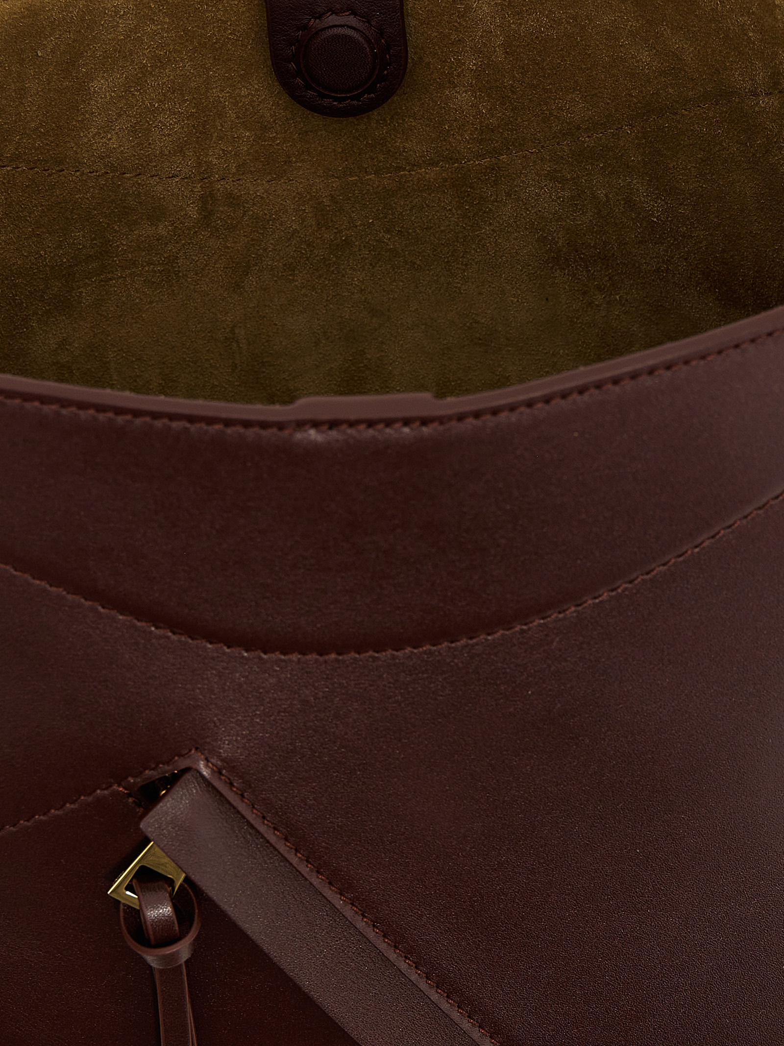 ‘Hammock Slice’ crossbody bag in shiny calf leather, side embossed logo, magnetic closure, heat-sealed suede lining, front pocket with zip closure and puller with ‘Dado Anagram Pebble’, adjustable and removable shoulder strap.