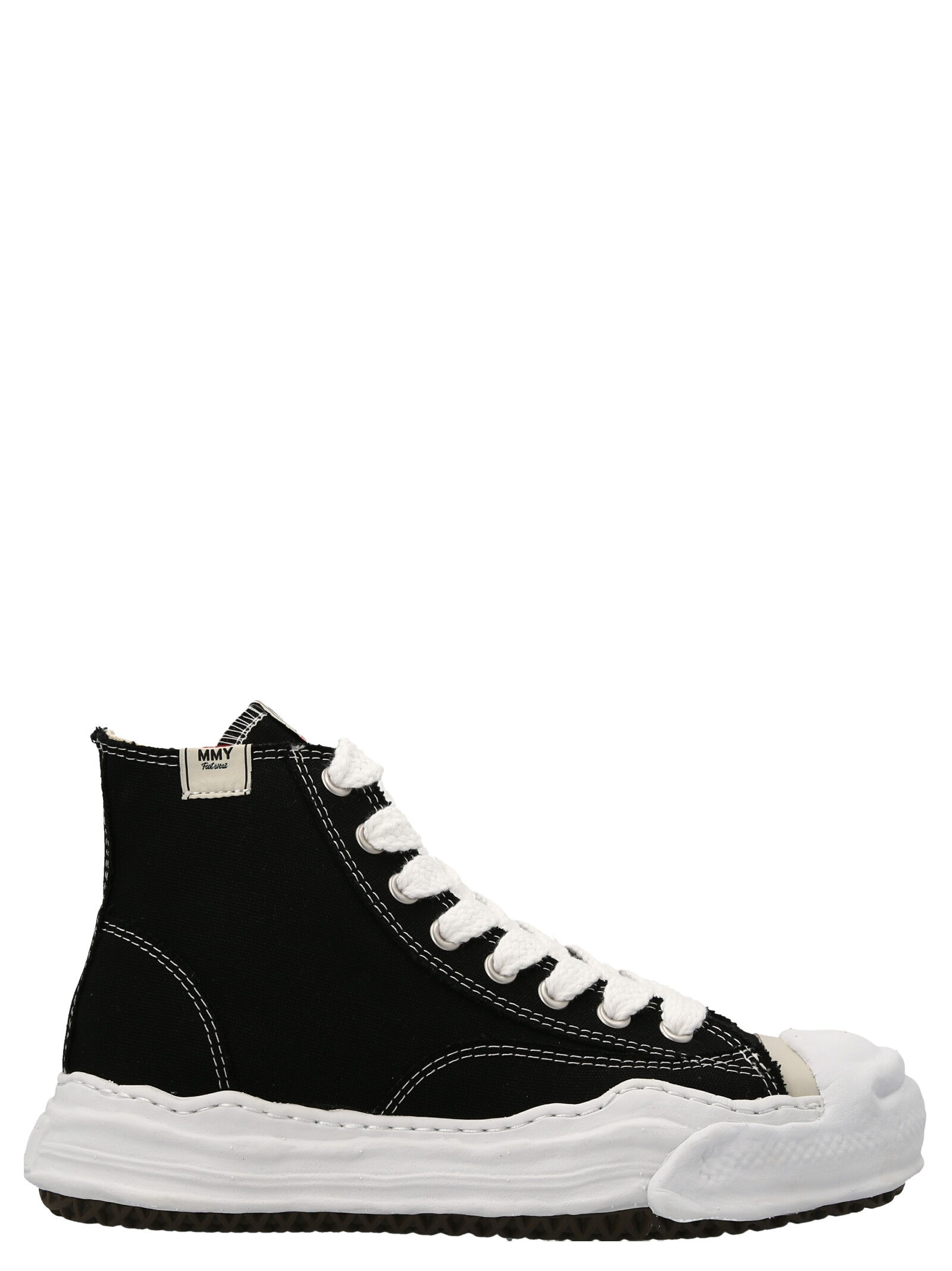 ‘Hank High’ distressed leather high-top lace-up sneakers featuring lacing and a rubber sole.