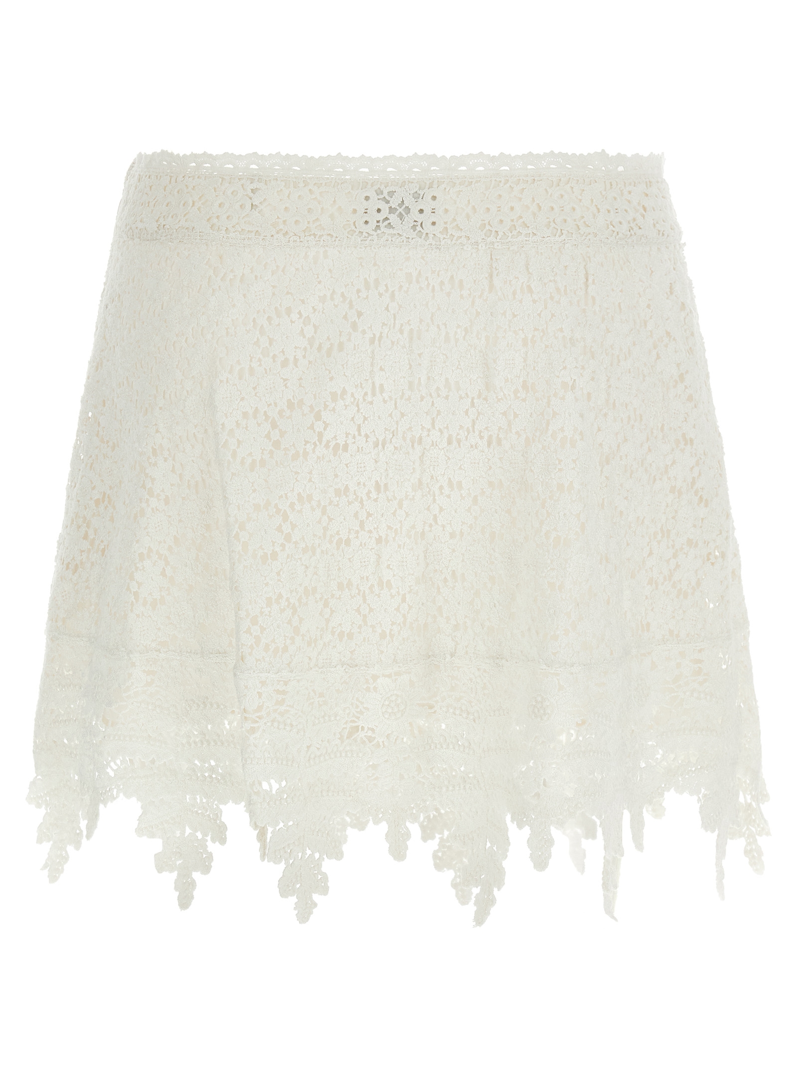 Mini ‘Hanta’ crochet cotton skirt, pince, side zip closure, underskirt, asymmetrical hem.