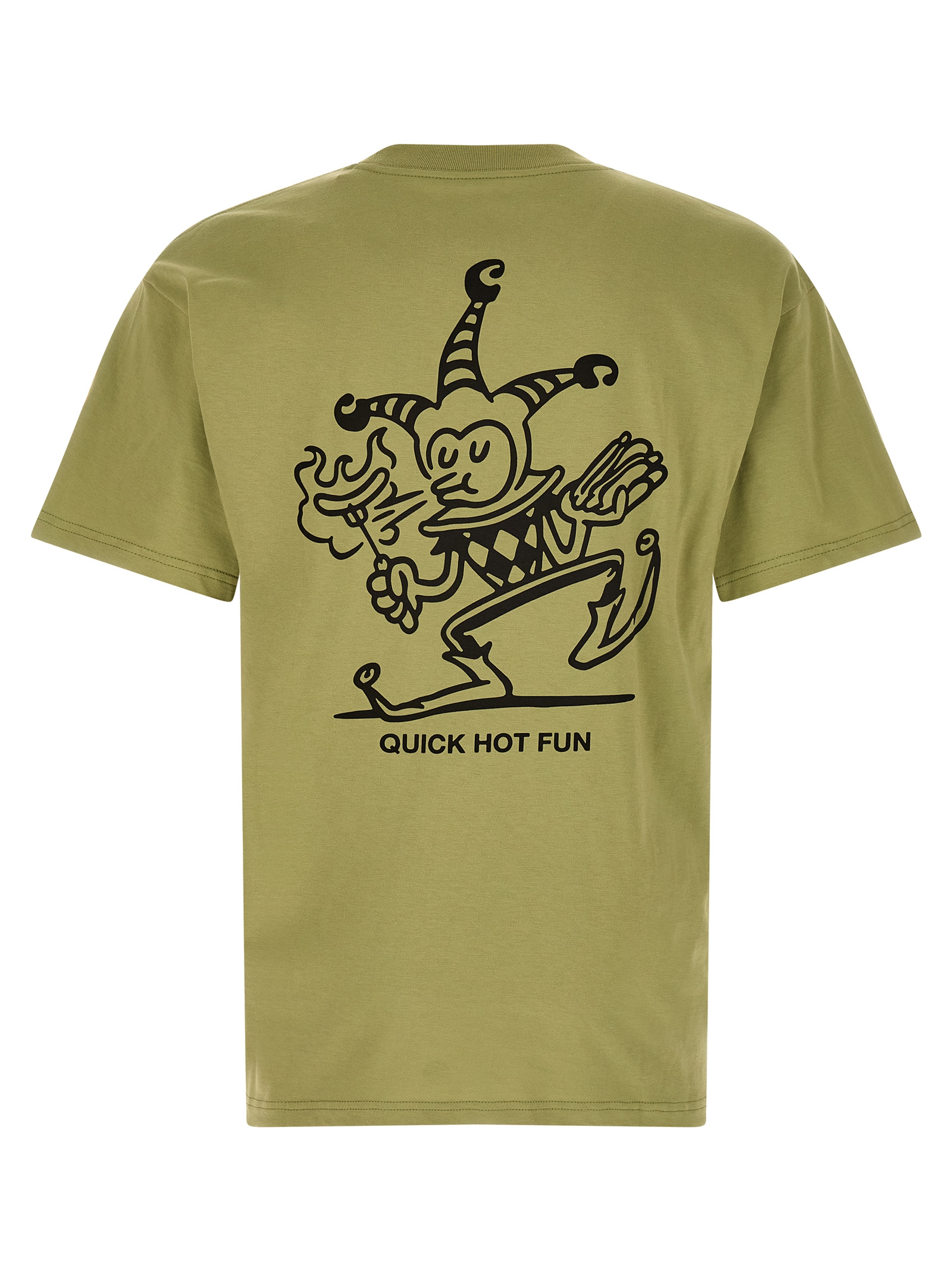 Medium weight cotton jersey T-shirt with ‘Harlequin BBQ’ print on the front and back, crew neck, short sleeves with dropped shoulders.