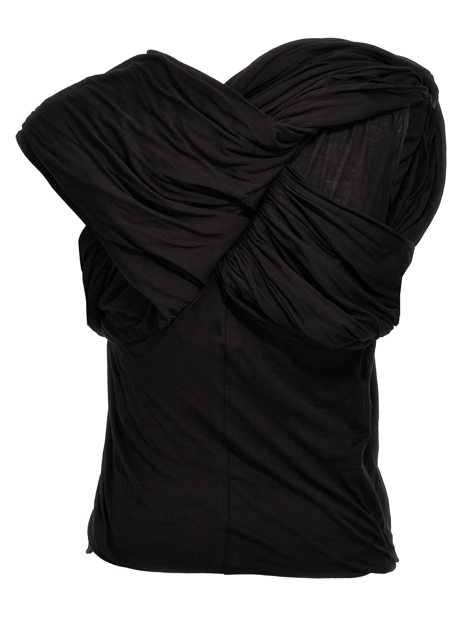 ‘Harness’ sleeveless draped cotton top with crew neck.