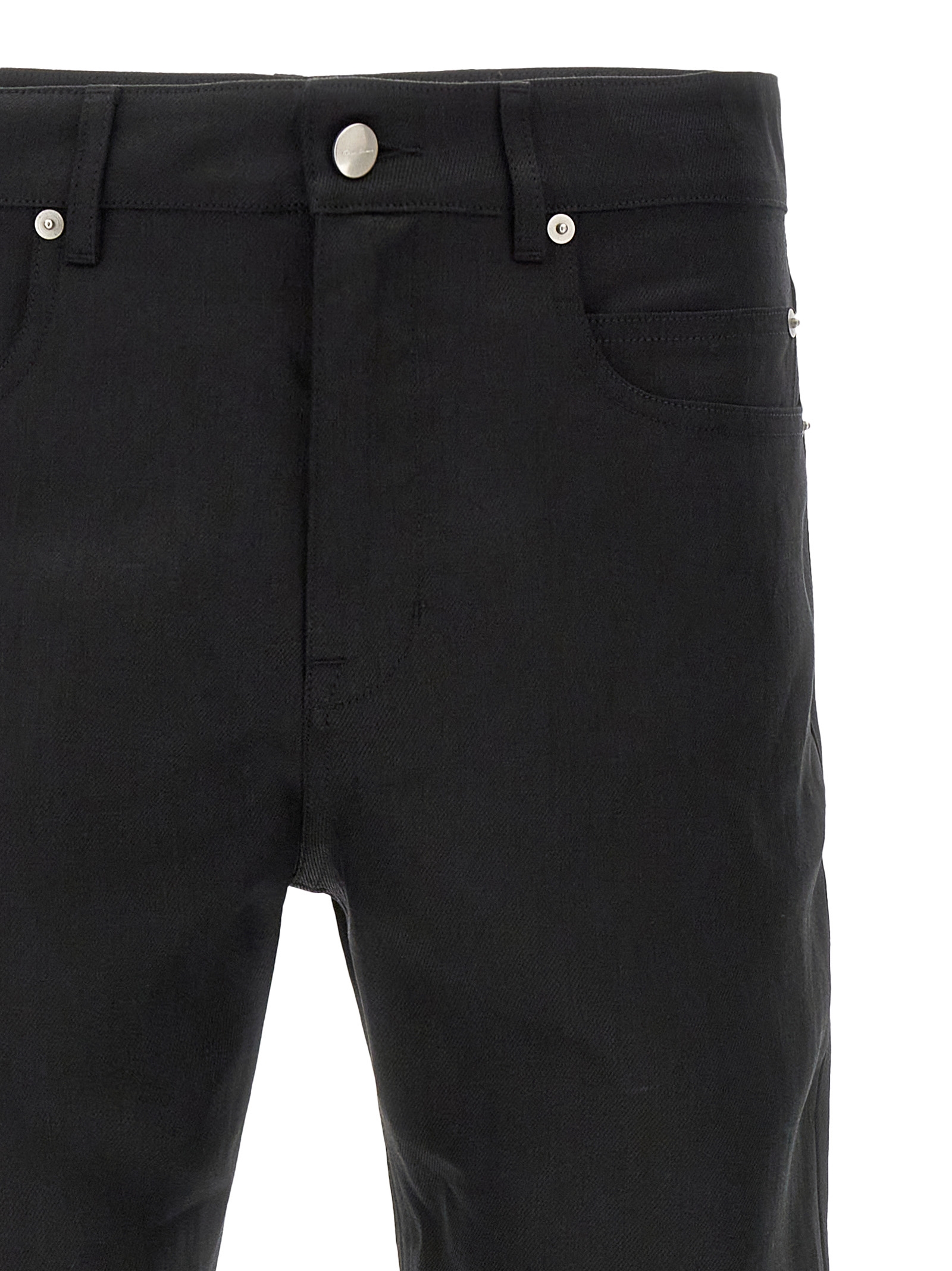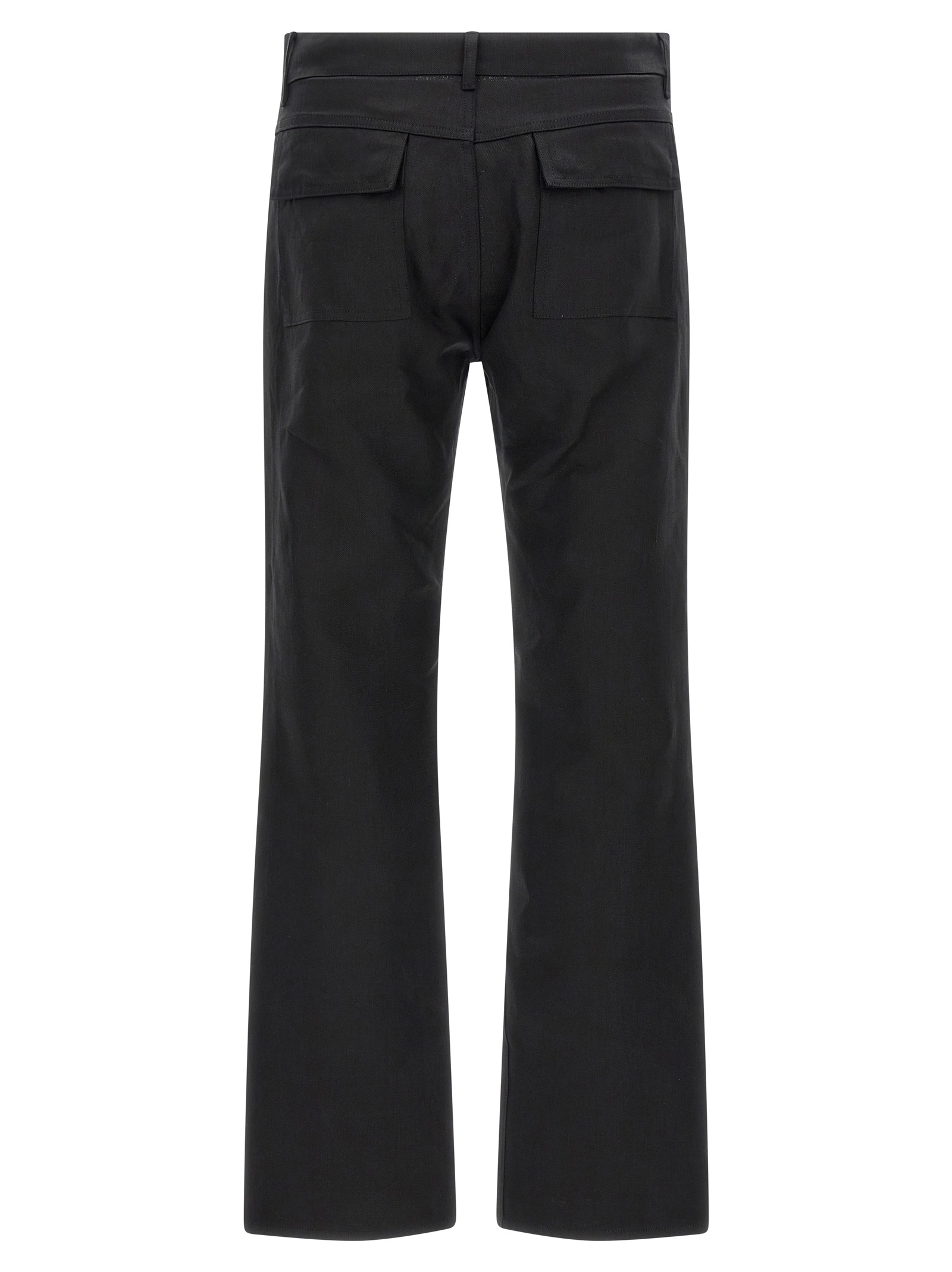 ‘Headon Utility’ linen twill pants, zip and button closure, five pockets, ankle length.