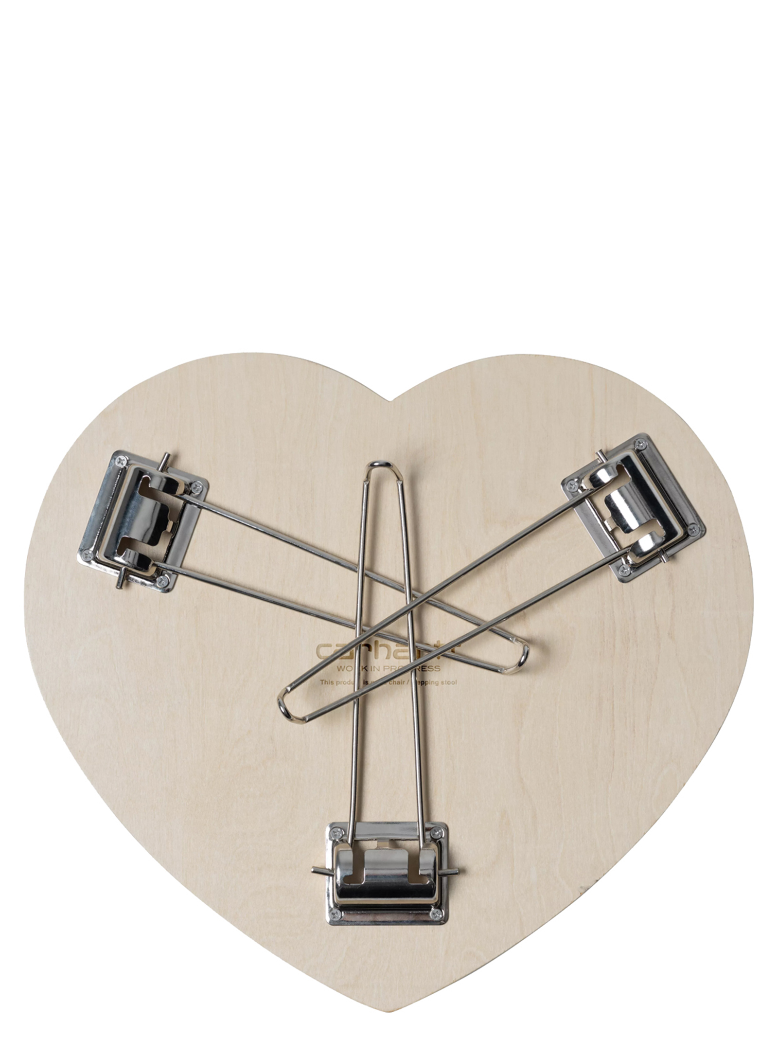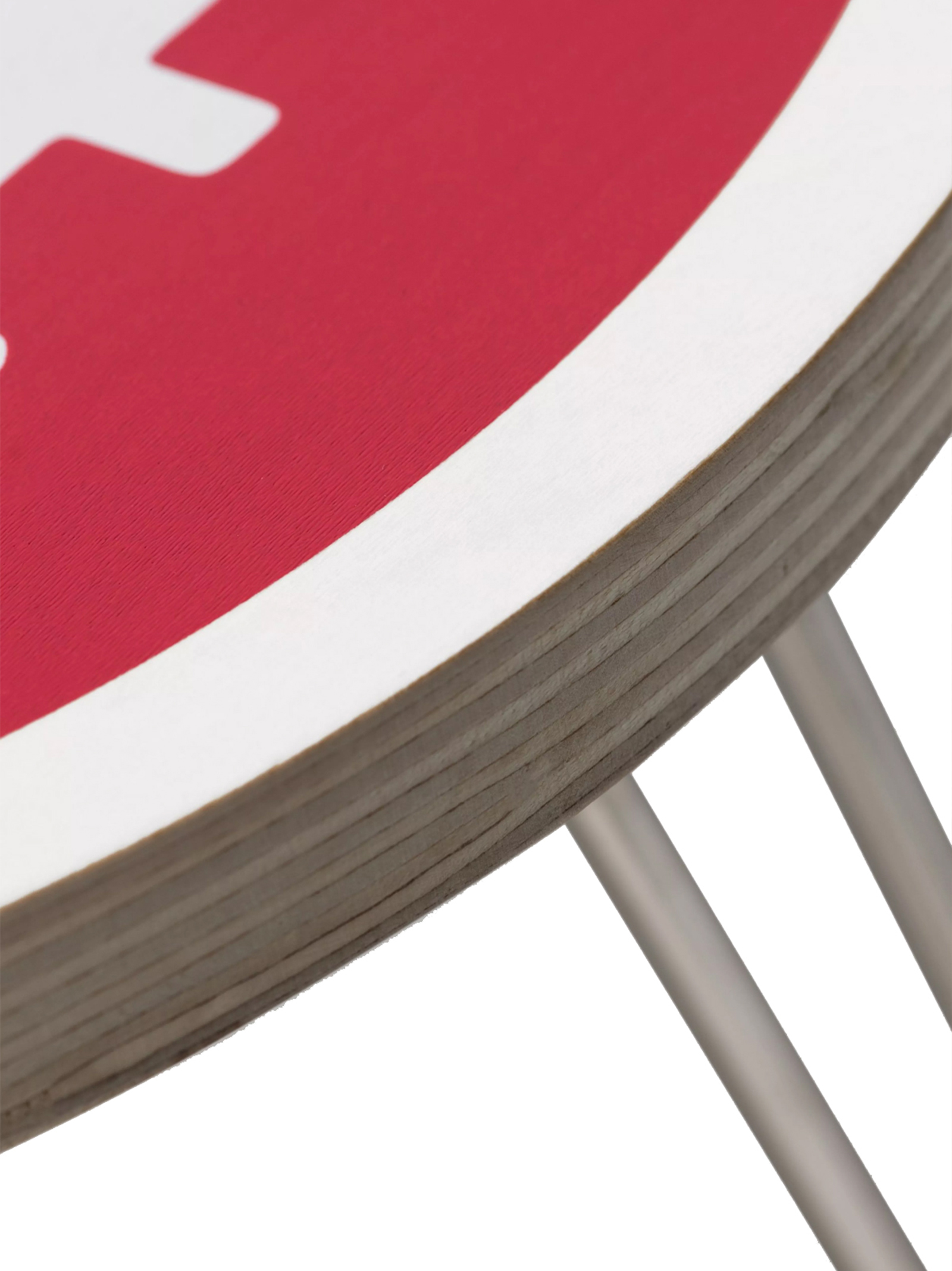 ‘Heart’ birch plywood coffee table with graphic print on the surface, folding iron legs.