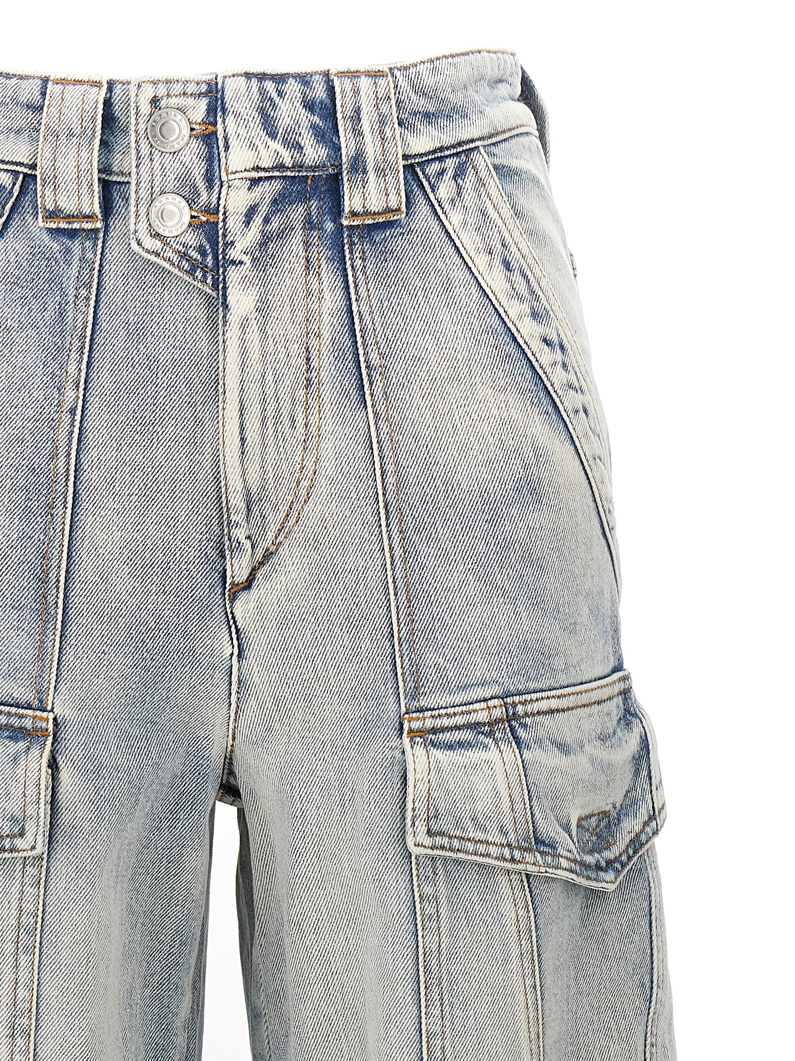 ‘Heilani’ cotton denim jeans with zip and button closure, pockets, wide leg waistband.
