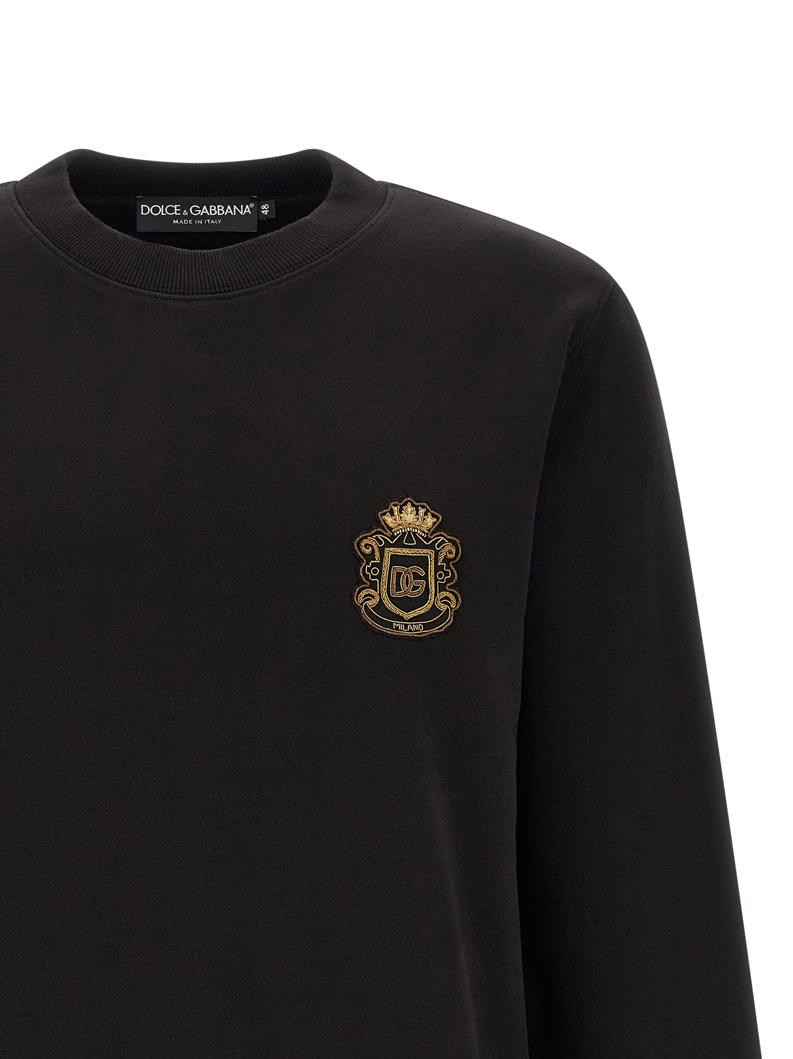 Brushed cotton sweatshirt, front heraldic patch, crew neck, long sleeves with cuffs and dropped shoulders, band on the hem.