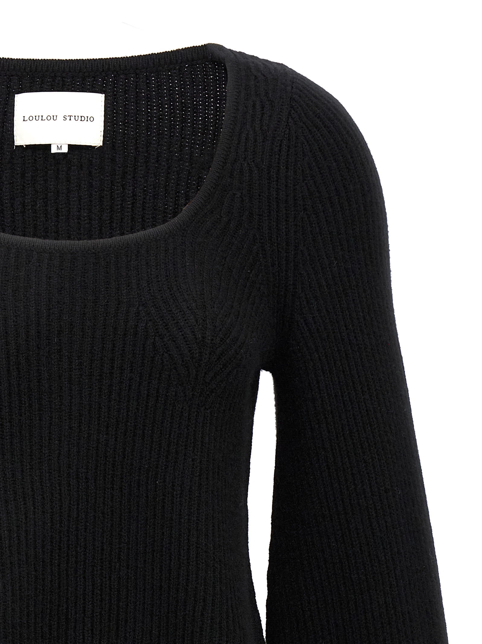 ‘Hermus’ cashmere sweater with ribbed sweater, round neckline, side splits, long cuffed sleeves.