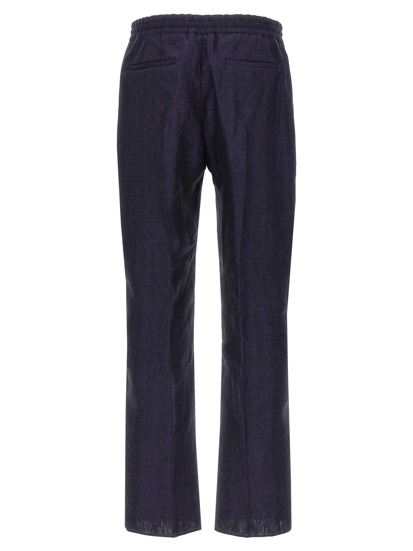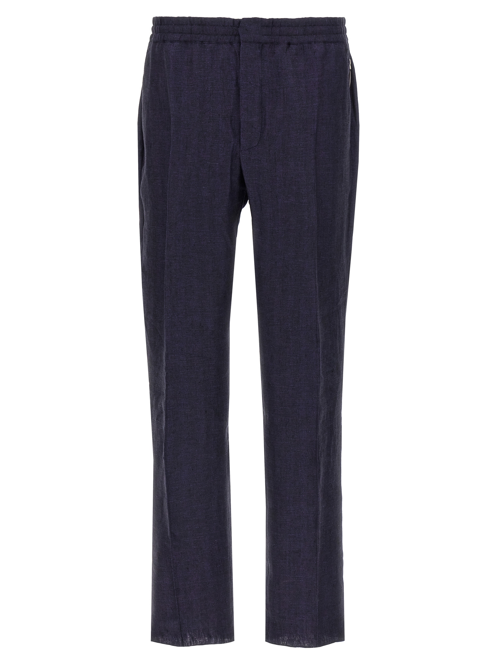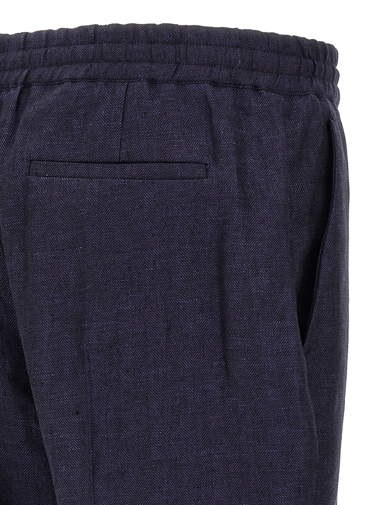 Herringbone linen trousers, elastic with adjustable drawstring at the waist, zip and button closure, pockets, stretched pleat.
