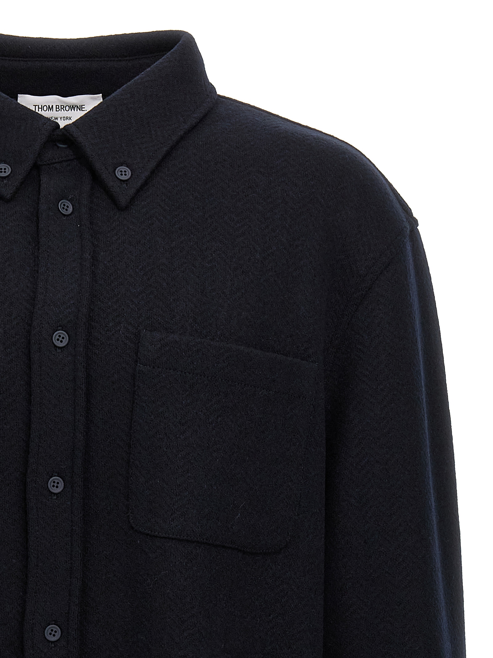 Herringbone cotton and wool shirt, button closure, front pocket, long cuffed sleeves.