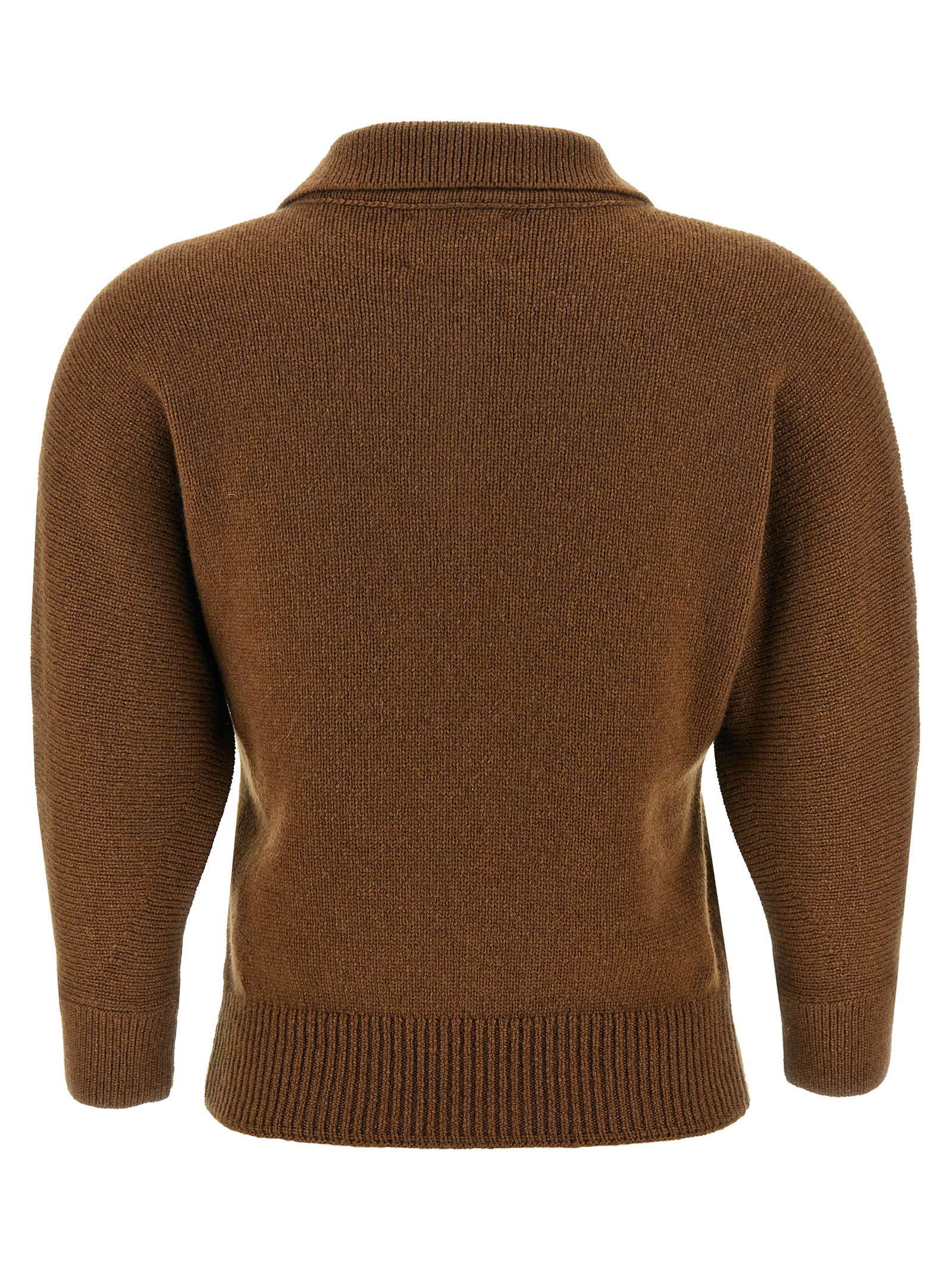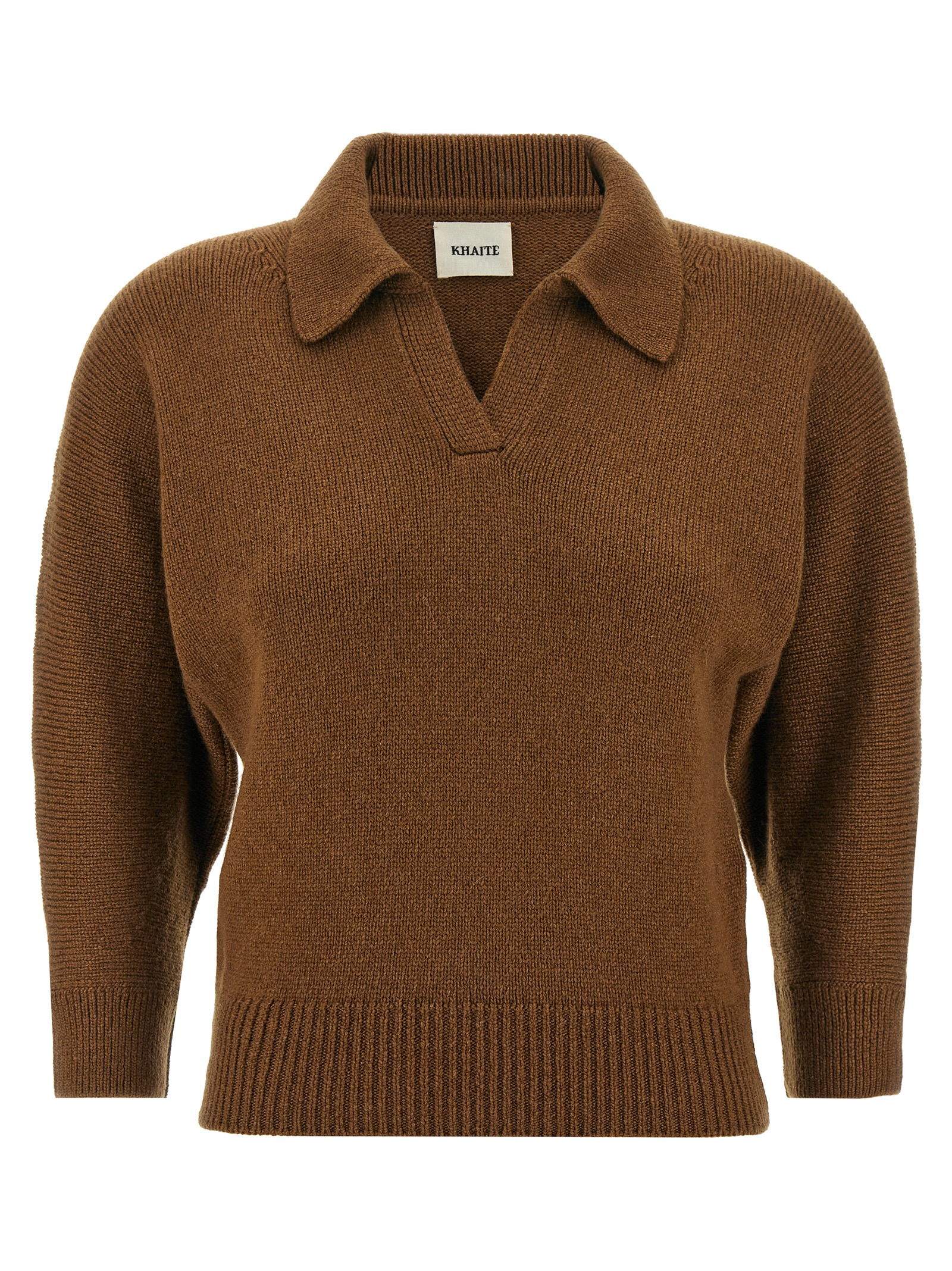 ‘Herve’ dense cashmere polo shirt with V-neck, collar, 3/4 sleeves.