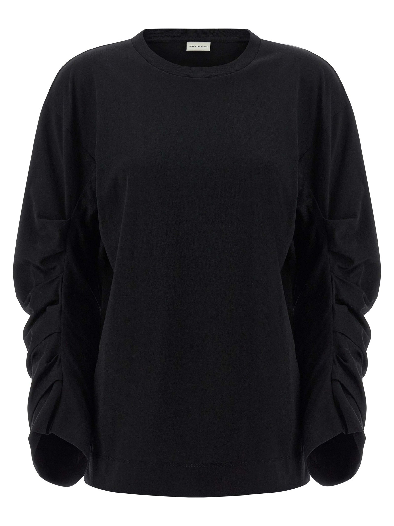 ‘Heynas’ cotton jersey crew neck t-shirt with long pleated sleeves and dropped shoulders.