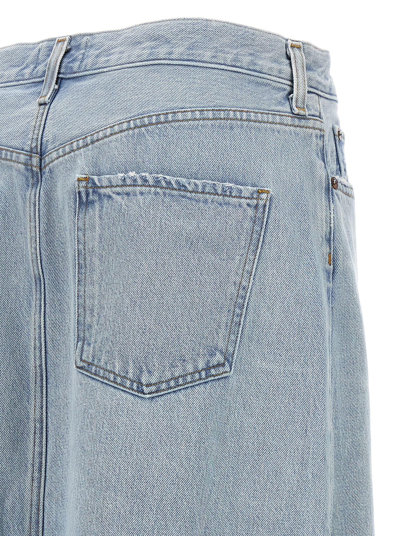 ‘Hilla’ skirt in used-effect cotton denim with zip and button closure, back split, frayed hem.