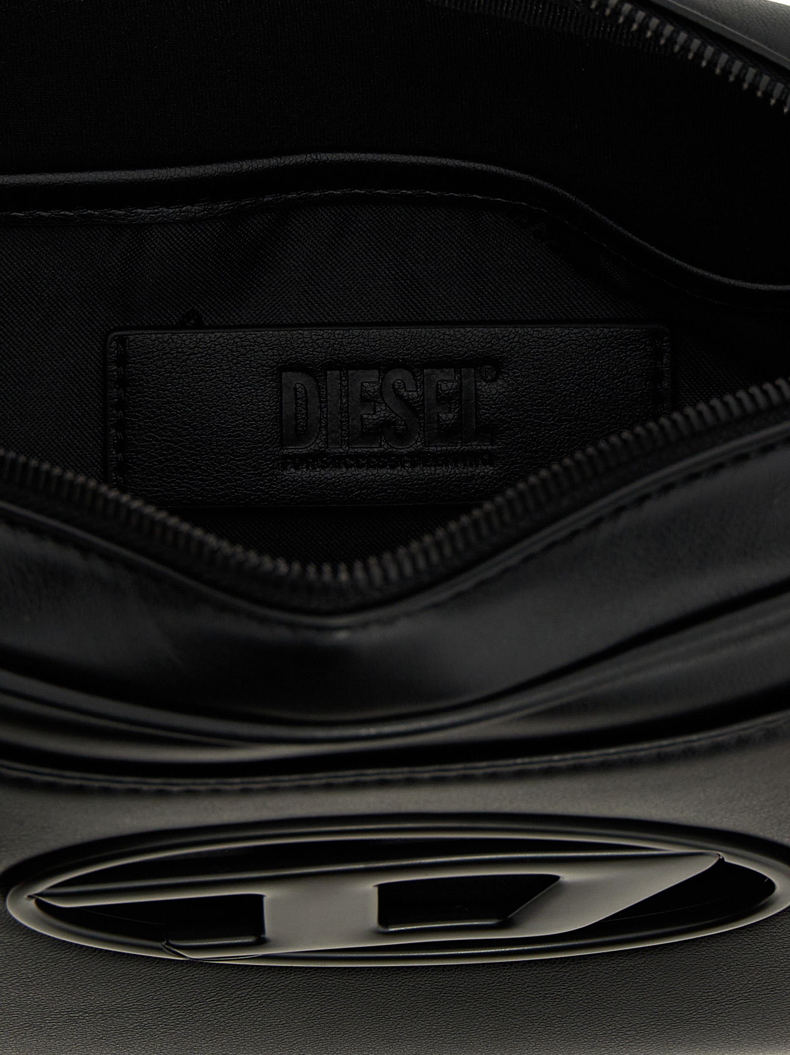 ‘Holi-D’ leather-effect fabric crossbody bag with neoprene lining, front inlaid metal Oval D detail, zip closure, adjustable and removable shoulder strap.