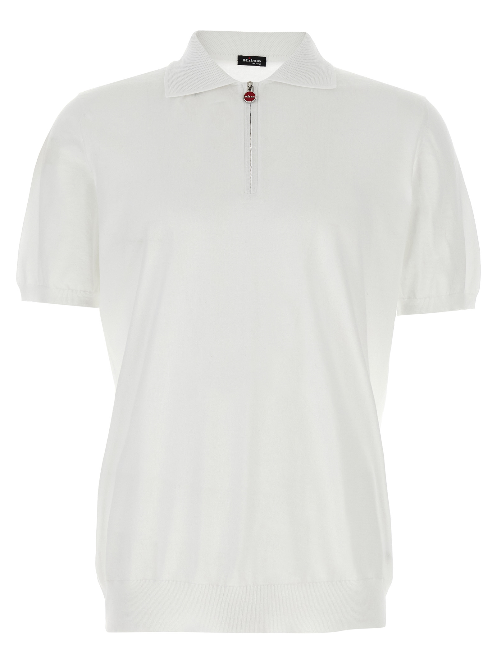 Polo shirt in lightweight stretch cotton with honeycomb collar, half zip, and short sleeves.