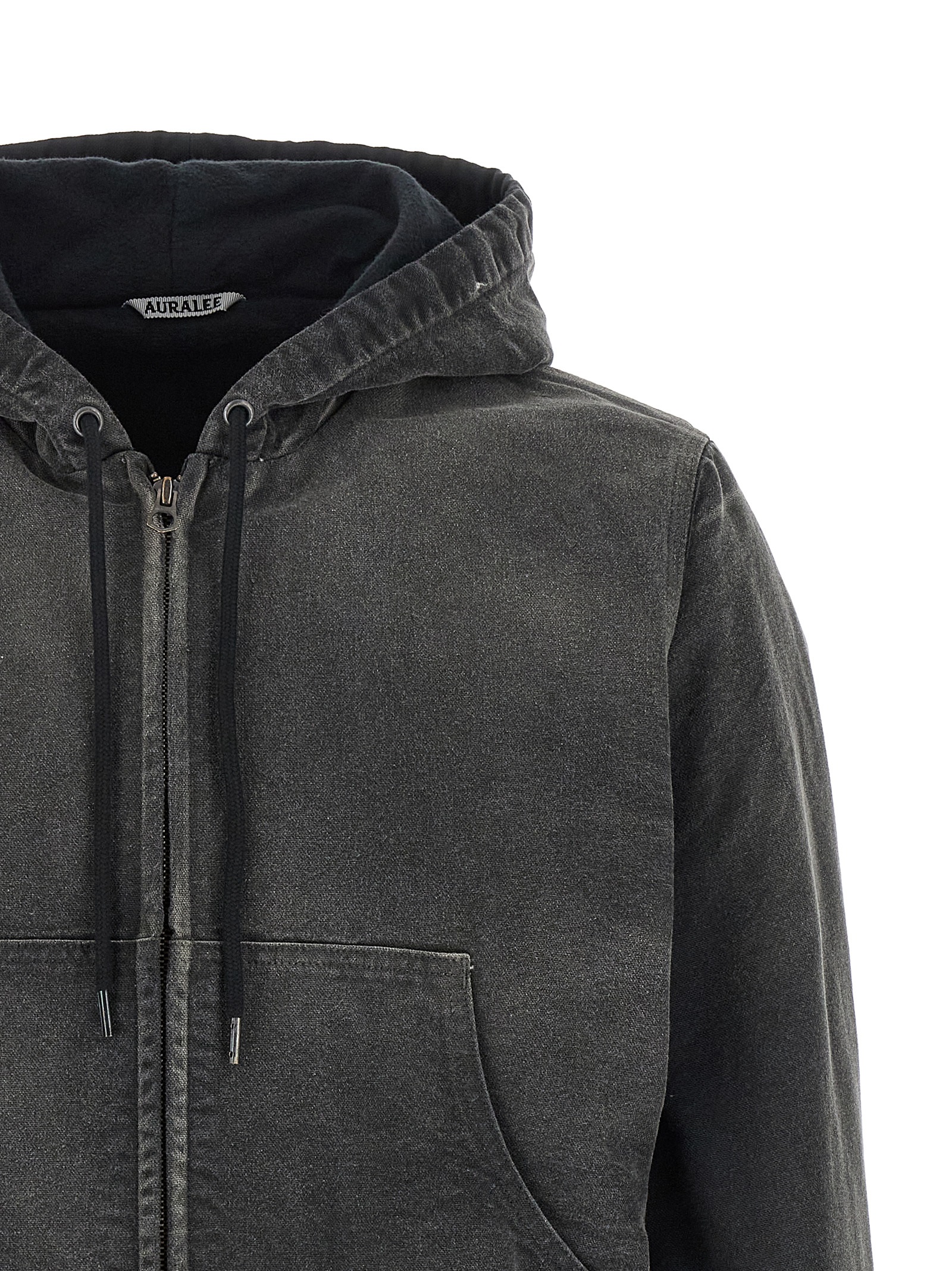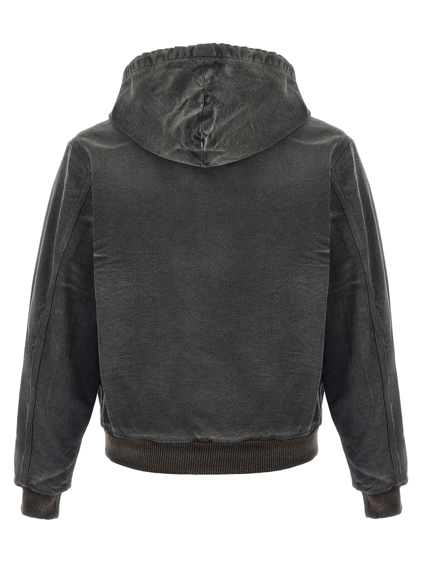 Parka hooded duck cotton densely woven with cotton yarns thick both in the warp and in the weft and dyed in vintage effect garment, front zip closure, pockets, long sleeves with cuffs and dropped shoulder, band on the hem.
