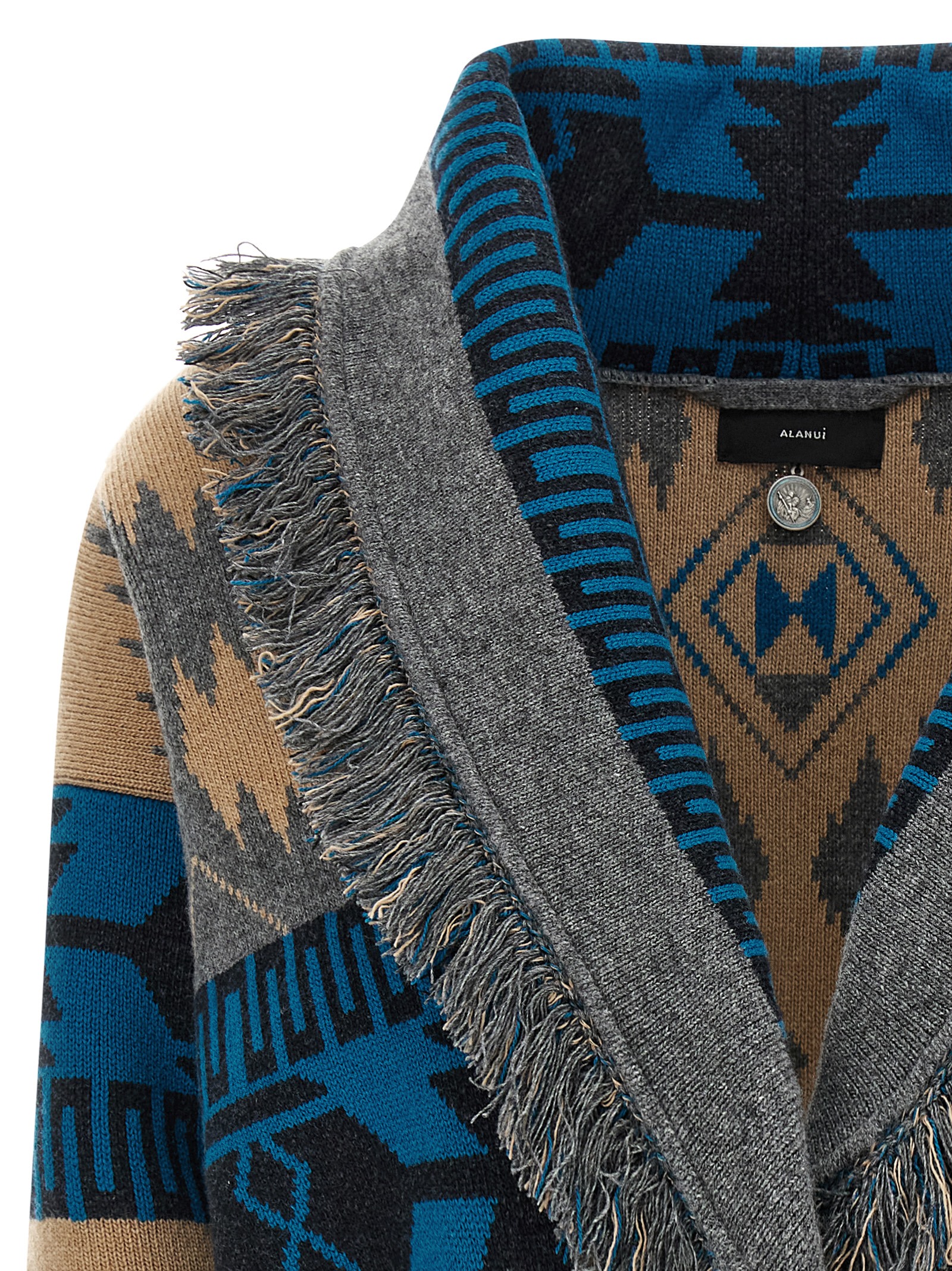 ‘Icon’ cashmere jacquard bomber jacket cardigan with button closure, long cuffed sleeves.