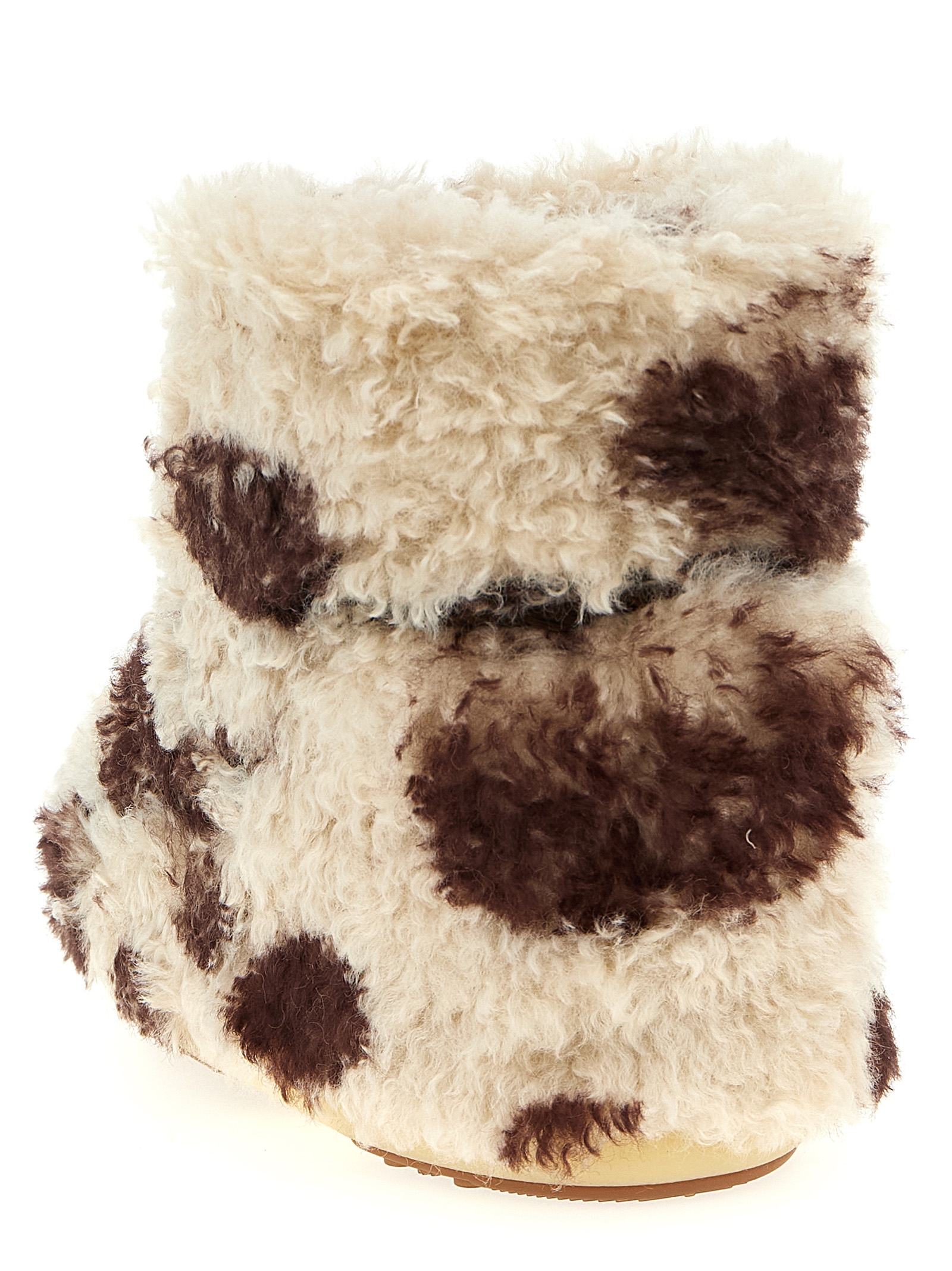 ‘Icon Low Curly Light’ ankle boots in fur-effect fabric, ambidextrous model, soft foam lining, tubular crossed laces, adjustable drawstring, thermoplastic rubber midsole, non-slip rubber tread.