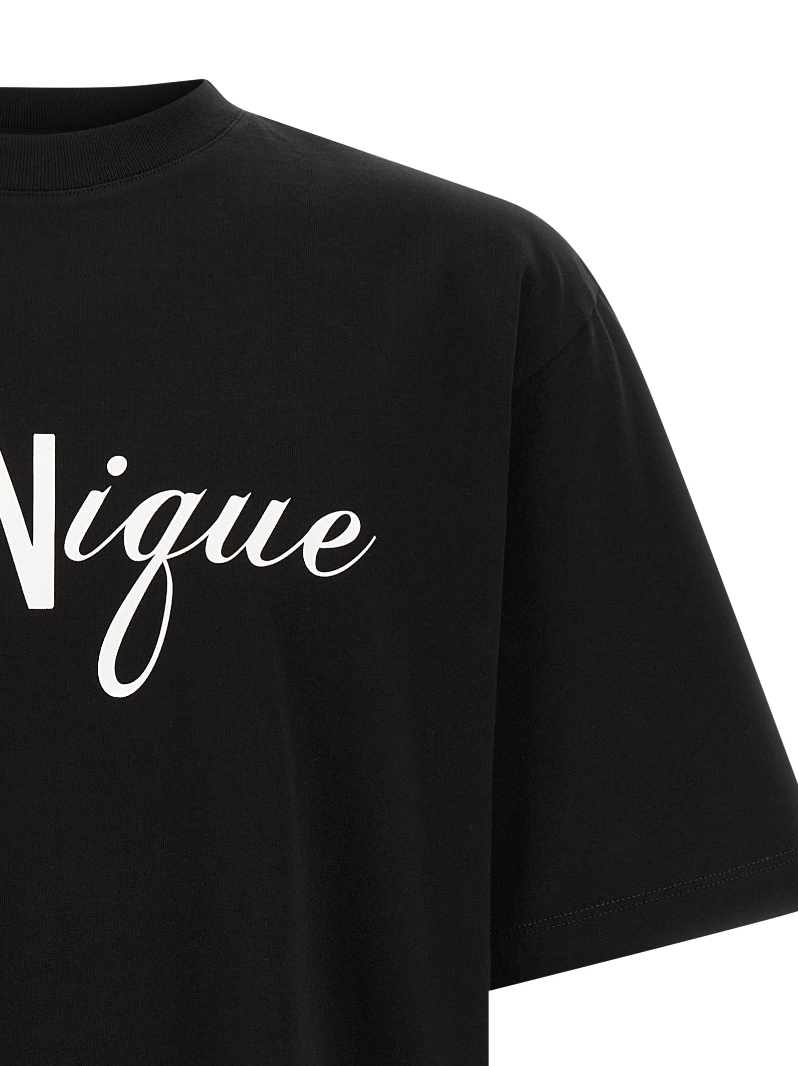 ‘ICONique’ cotton jersey T-shirt with front and back print, crew neck, short sleeves with dropped shoulders.