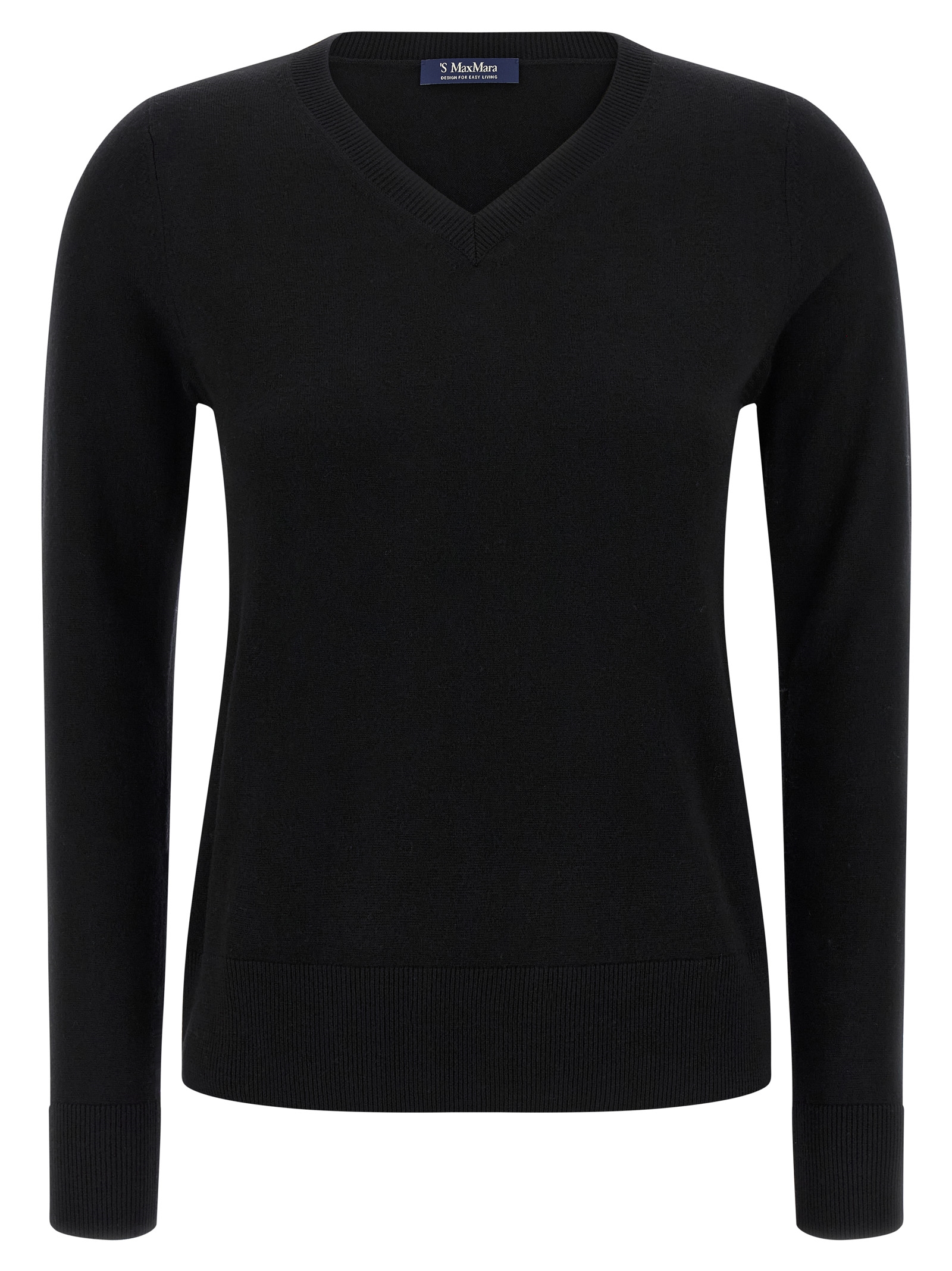 ‘Idoneo’ wool yarn sweater with V-neck, long cuffed sleeves.