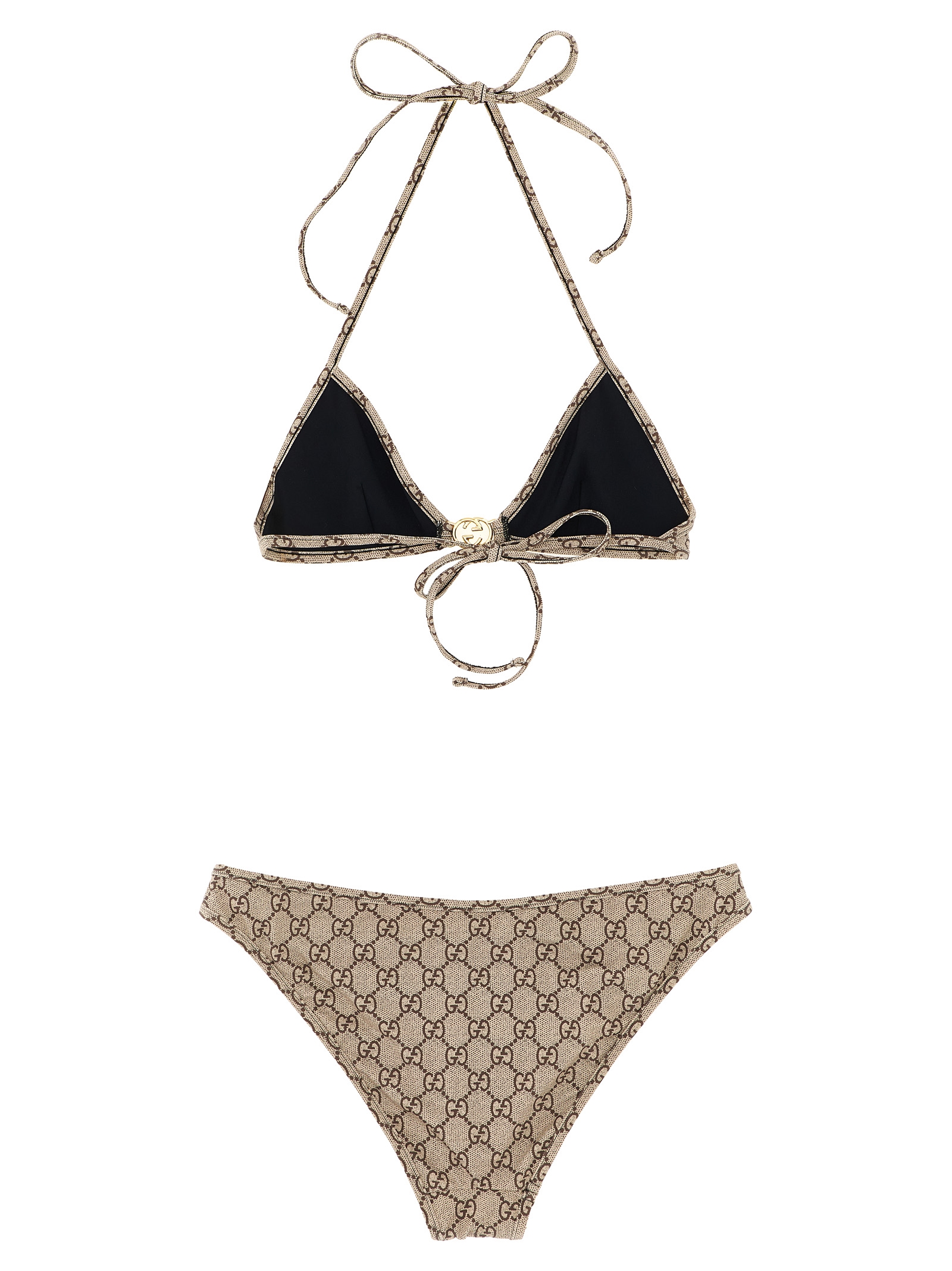 Stretch ‘GG’ jersey bikini with metal ‘Incrocio GG’ logo on the front, triangle top with lacing and briefs with medium cover.