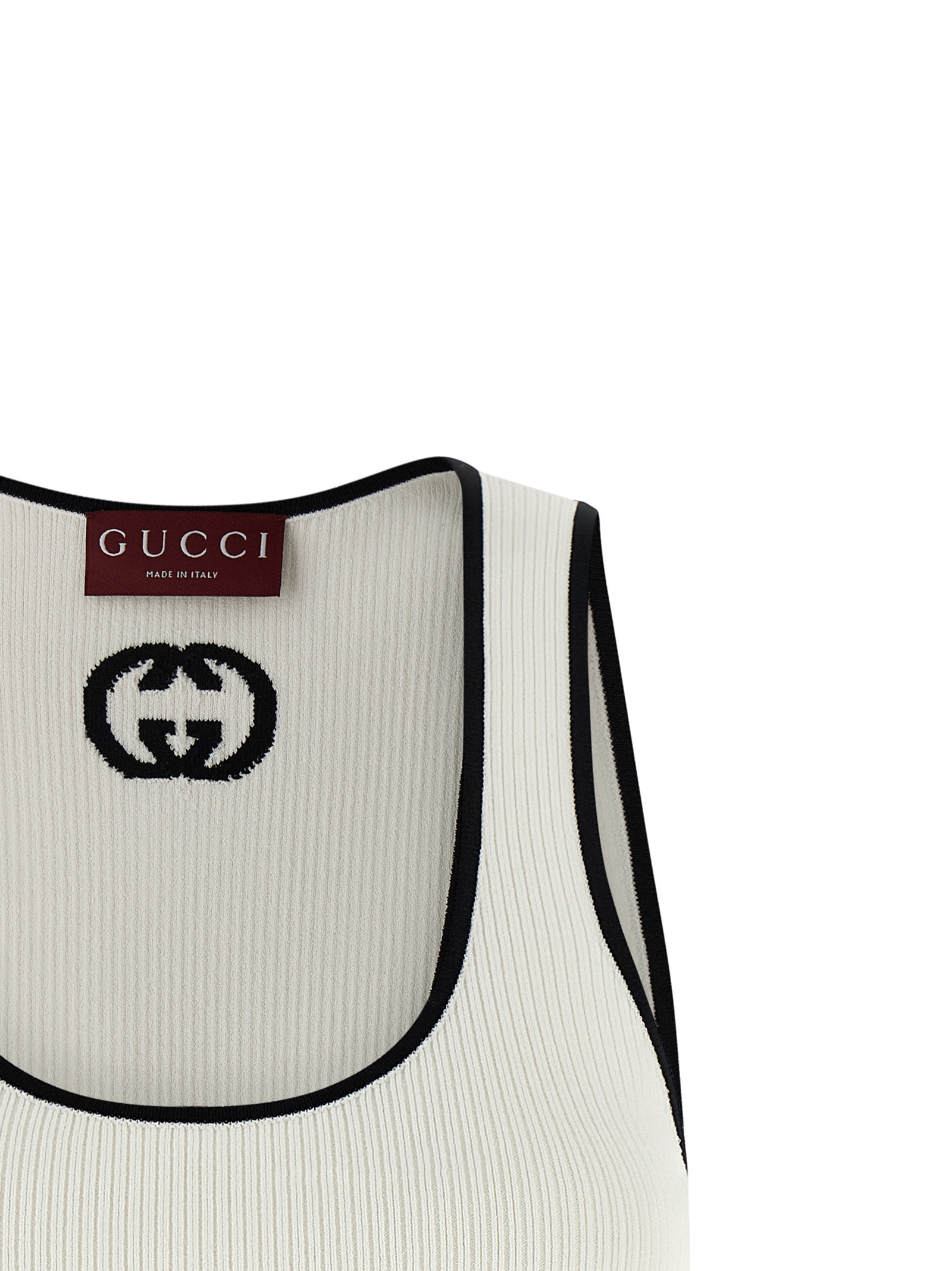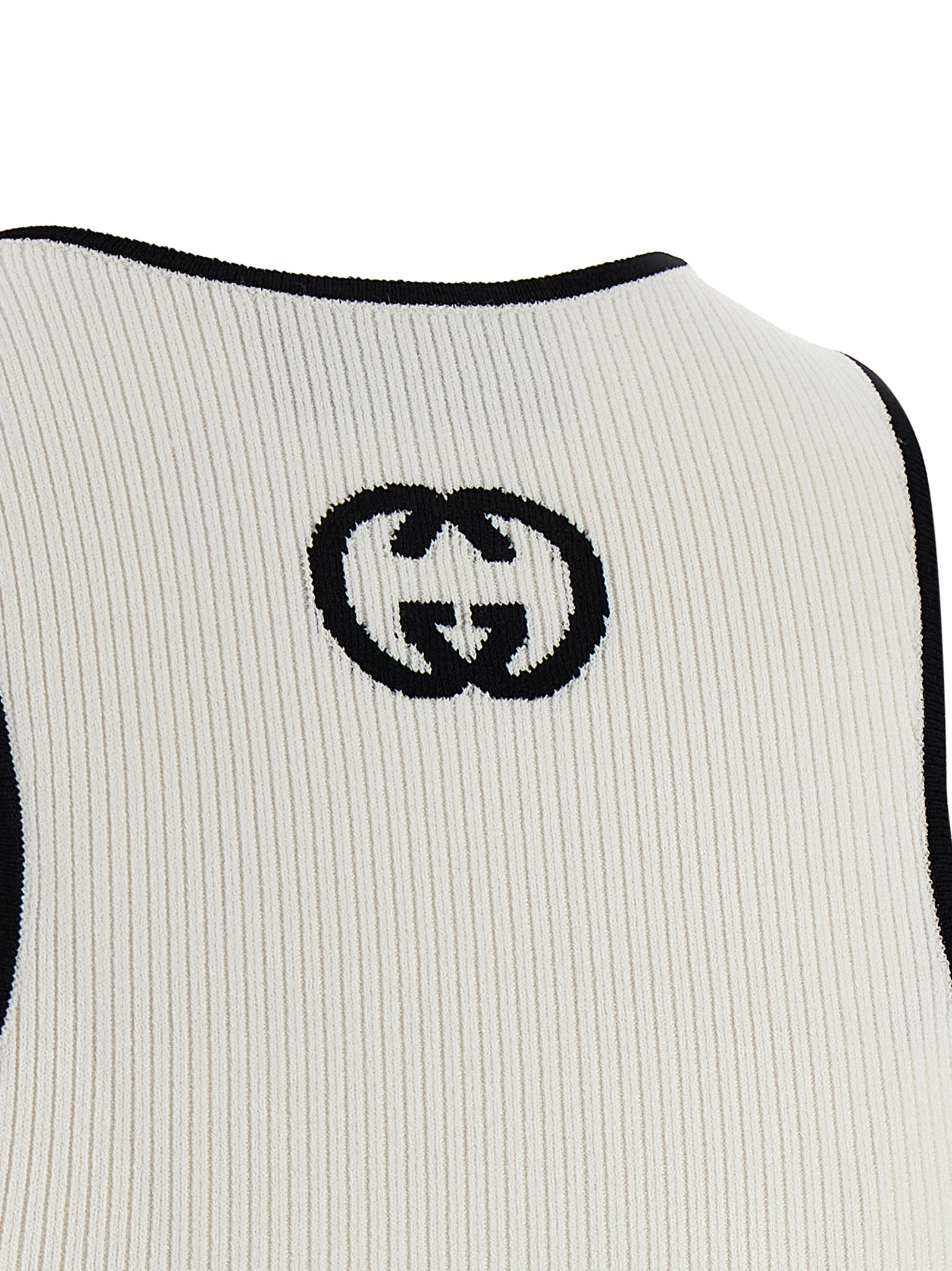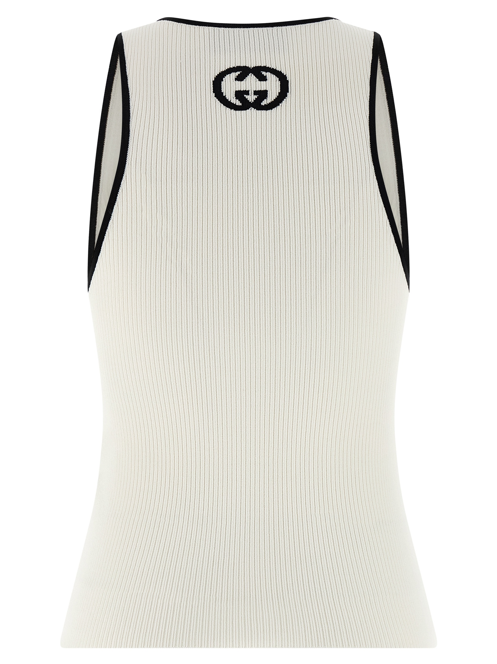 Ribbed fine viscose tank top with contrast details, contrast ‘Incrocio GG’ intarsia at the back, wide round neckline at the front.
