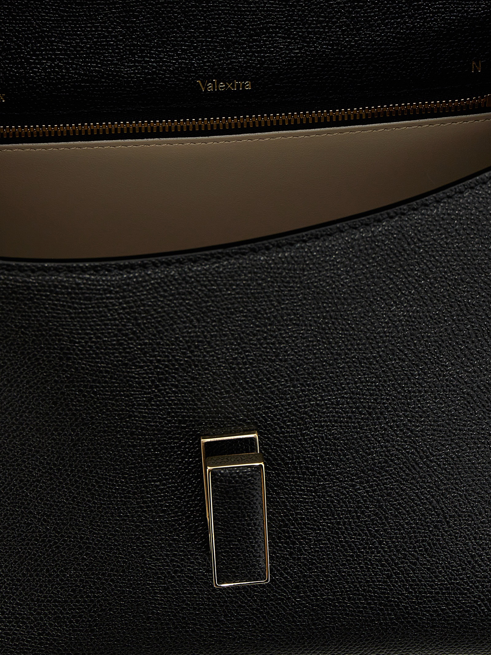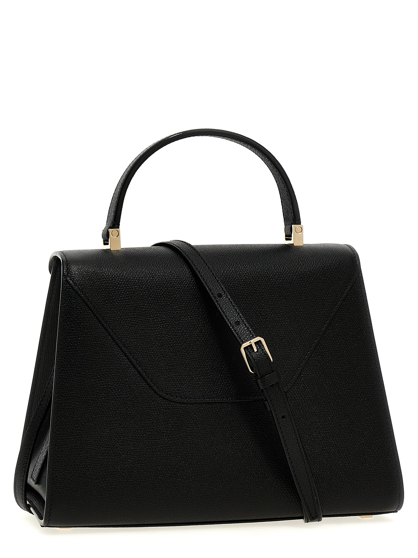 ‘Iside’ medium handbag in Millepunte calf leather, Costa Valextra piping, fixed handle, flap turn-up closure, metal details, adjustable and removable shoulder strap.
