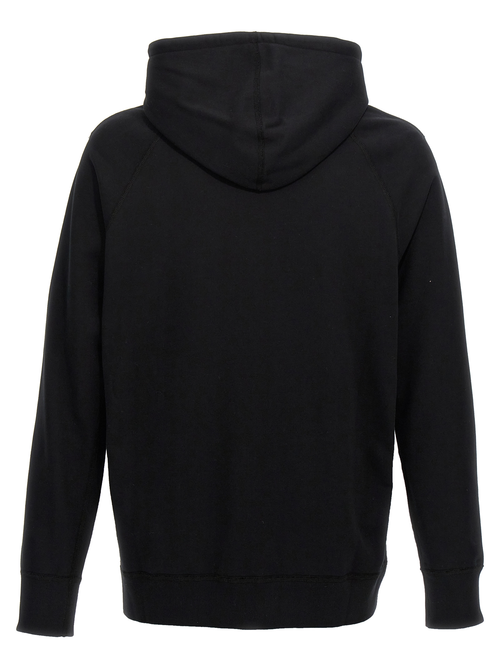 Cotton hoodie with front wool knit jacquard insert, zip closure, long cuffed sleeves.