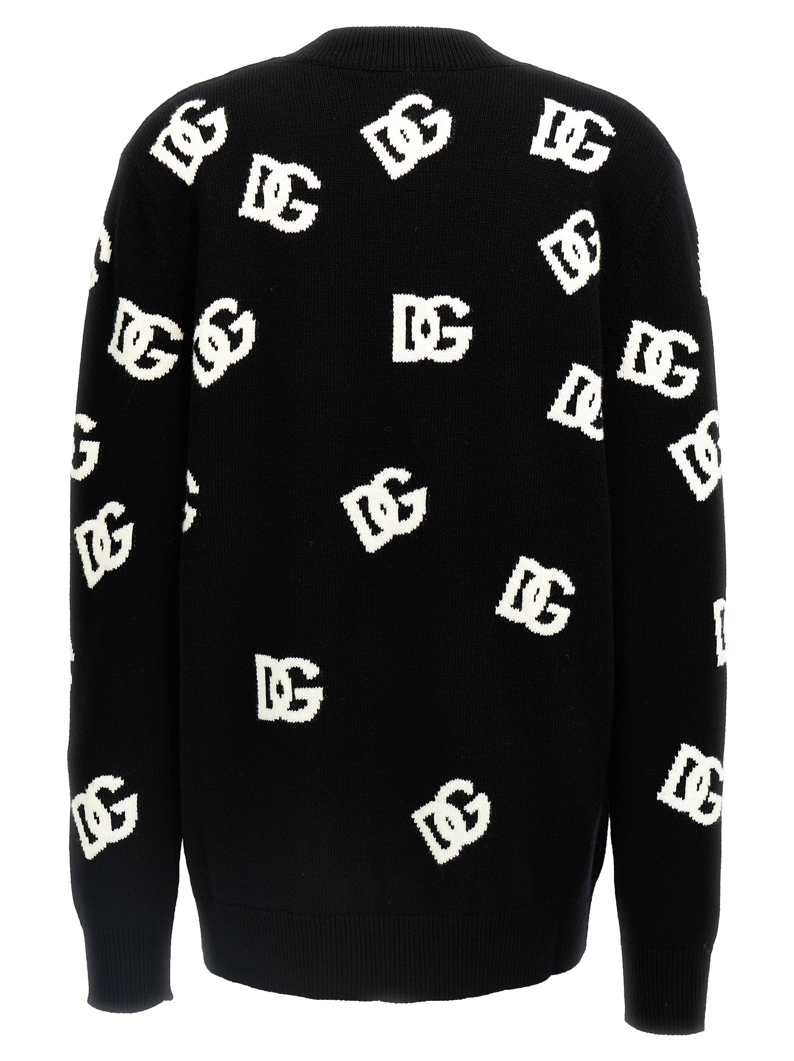 Wool cardigan with all-over jacquard logo, button closure, long cuffed sleeves.