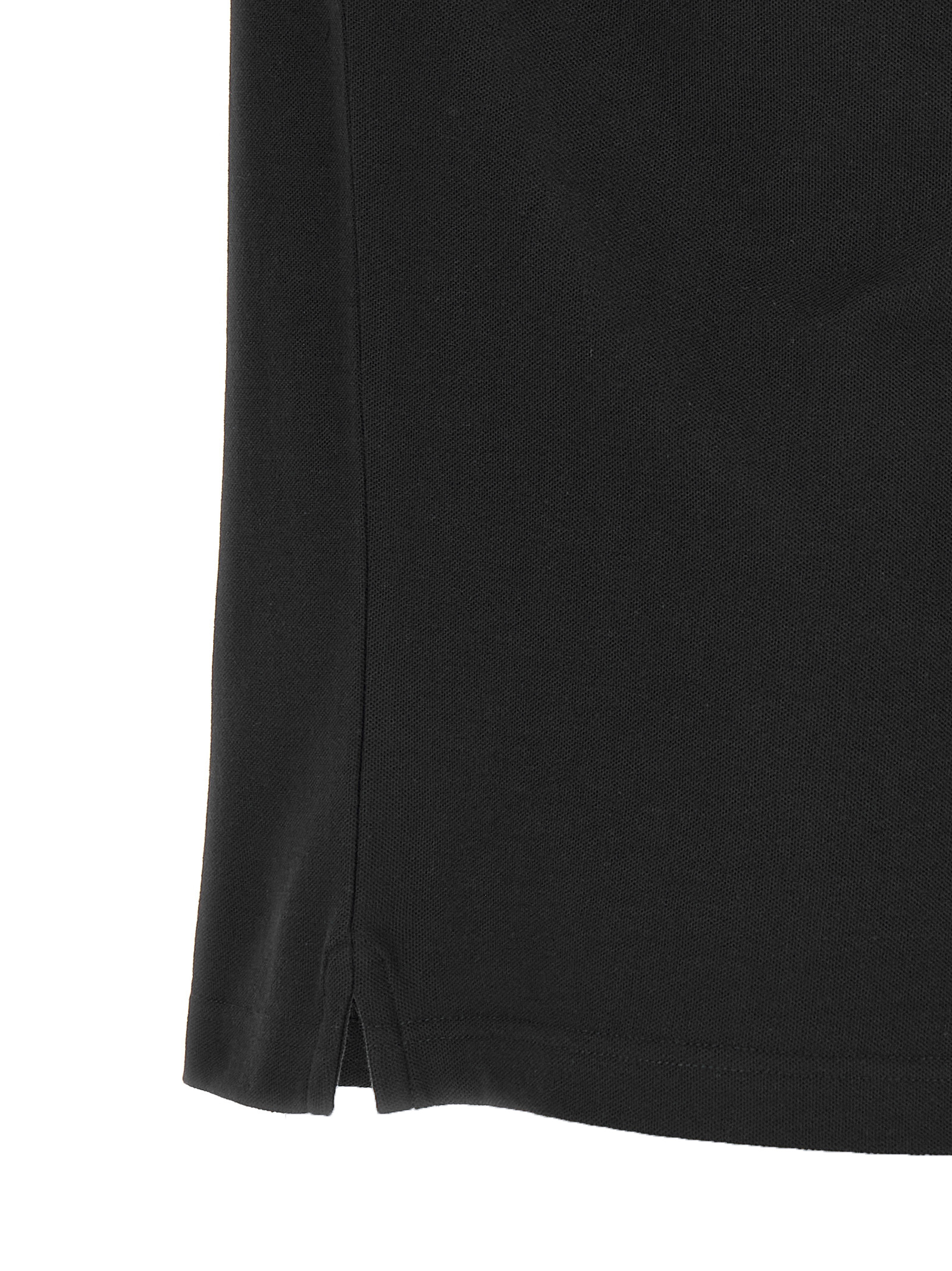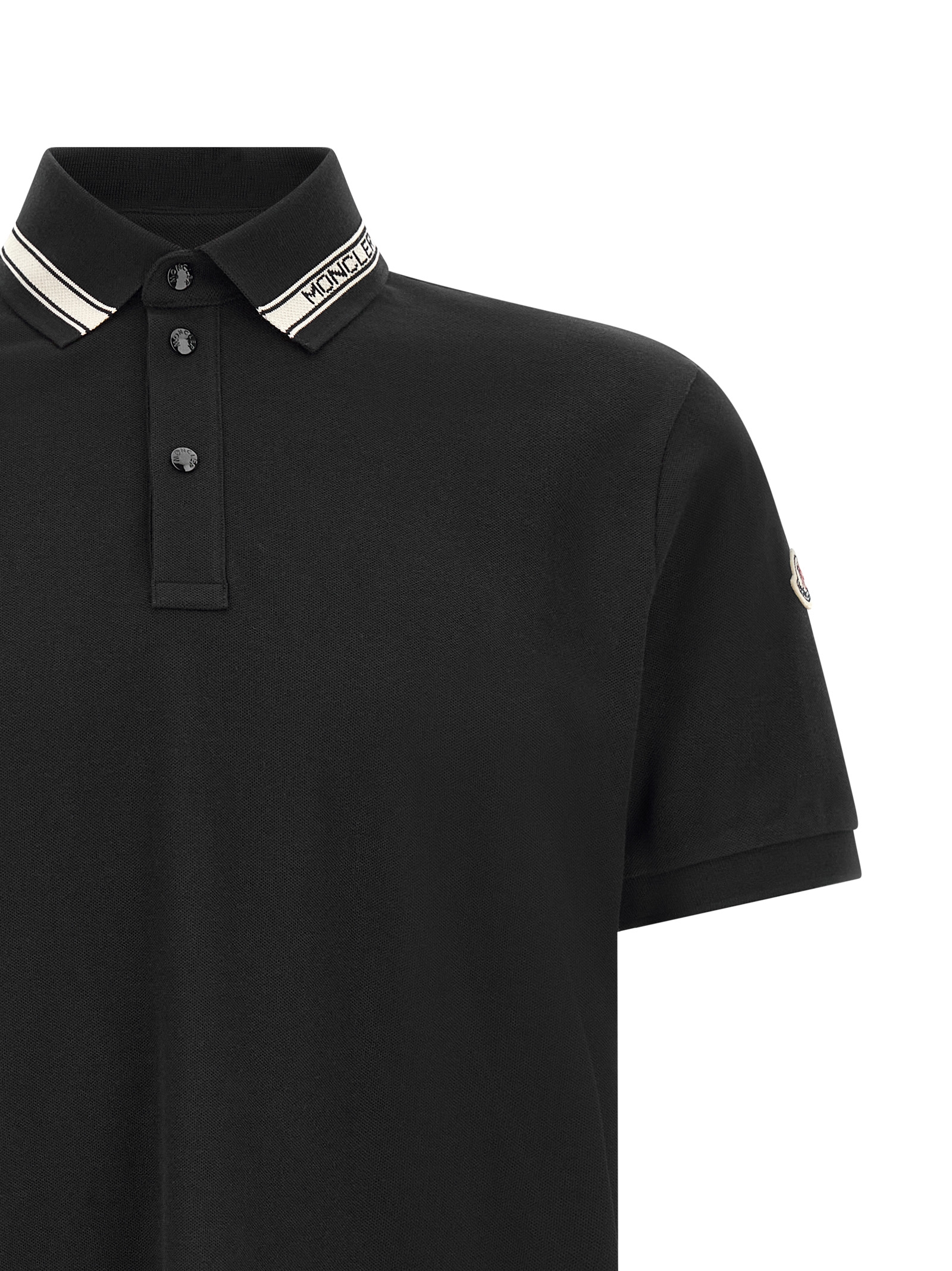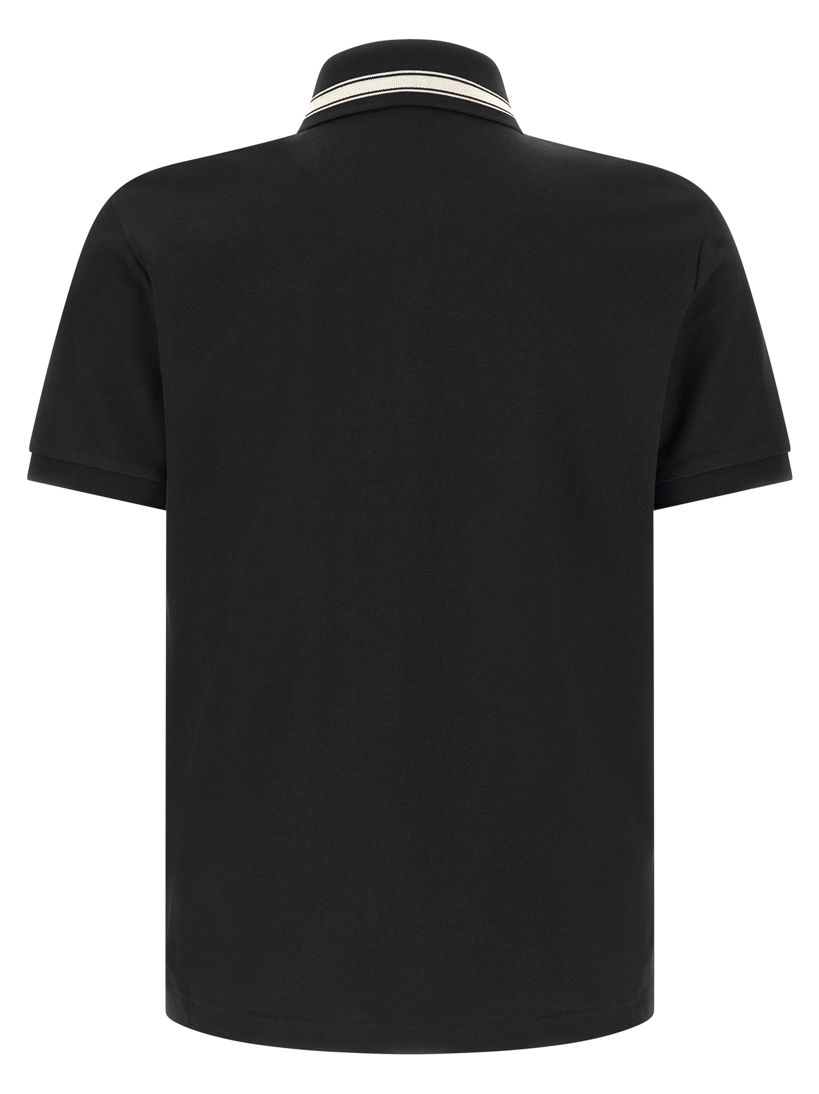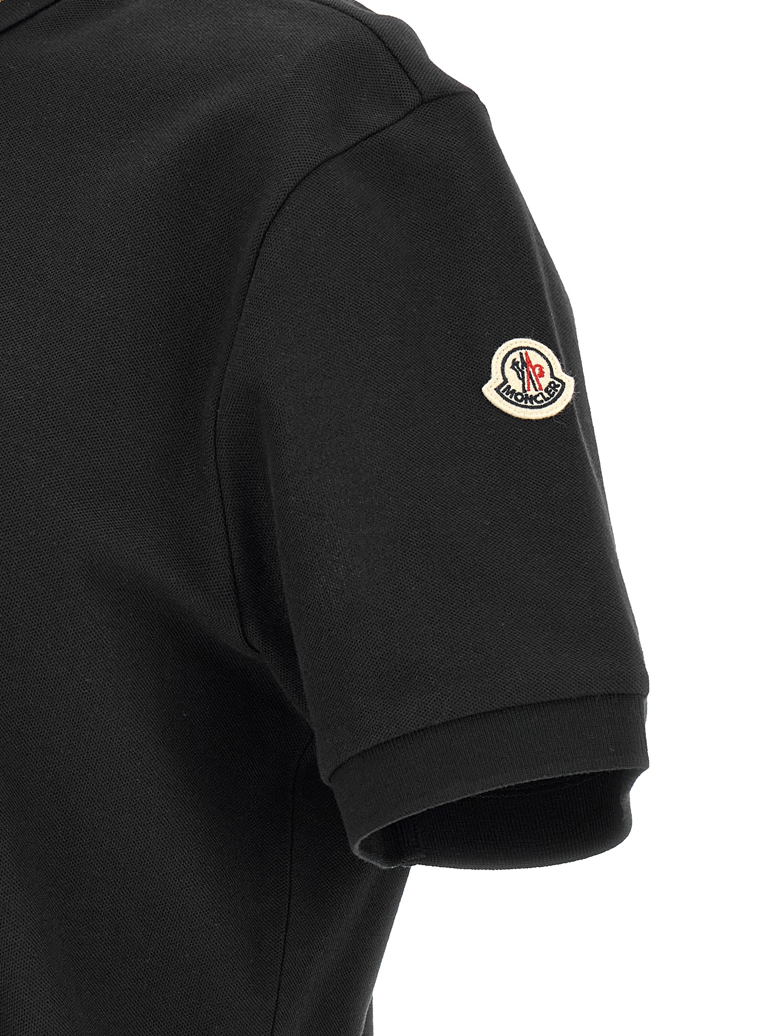 Piqué cotton polo shirt, collar with contrast jacquard logo and snap buttons, short sleeves with cuffs, felt logo patch, side splits.