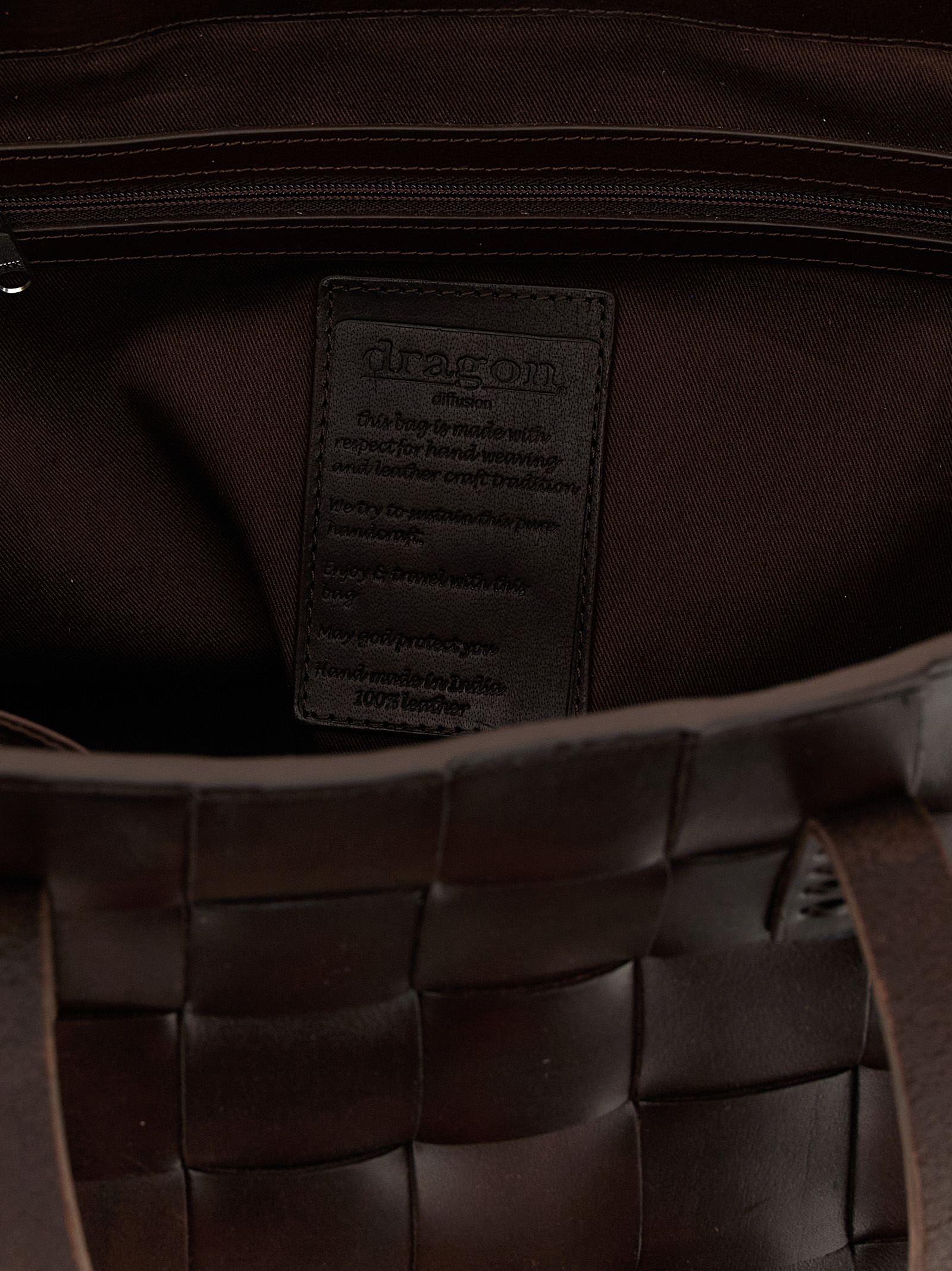 ‘Japan Tote’ hand-woven buffalo leather shopping bag, cotton lining, double fixed handle.