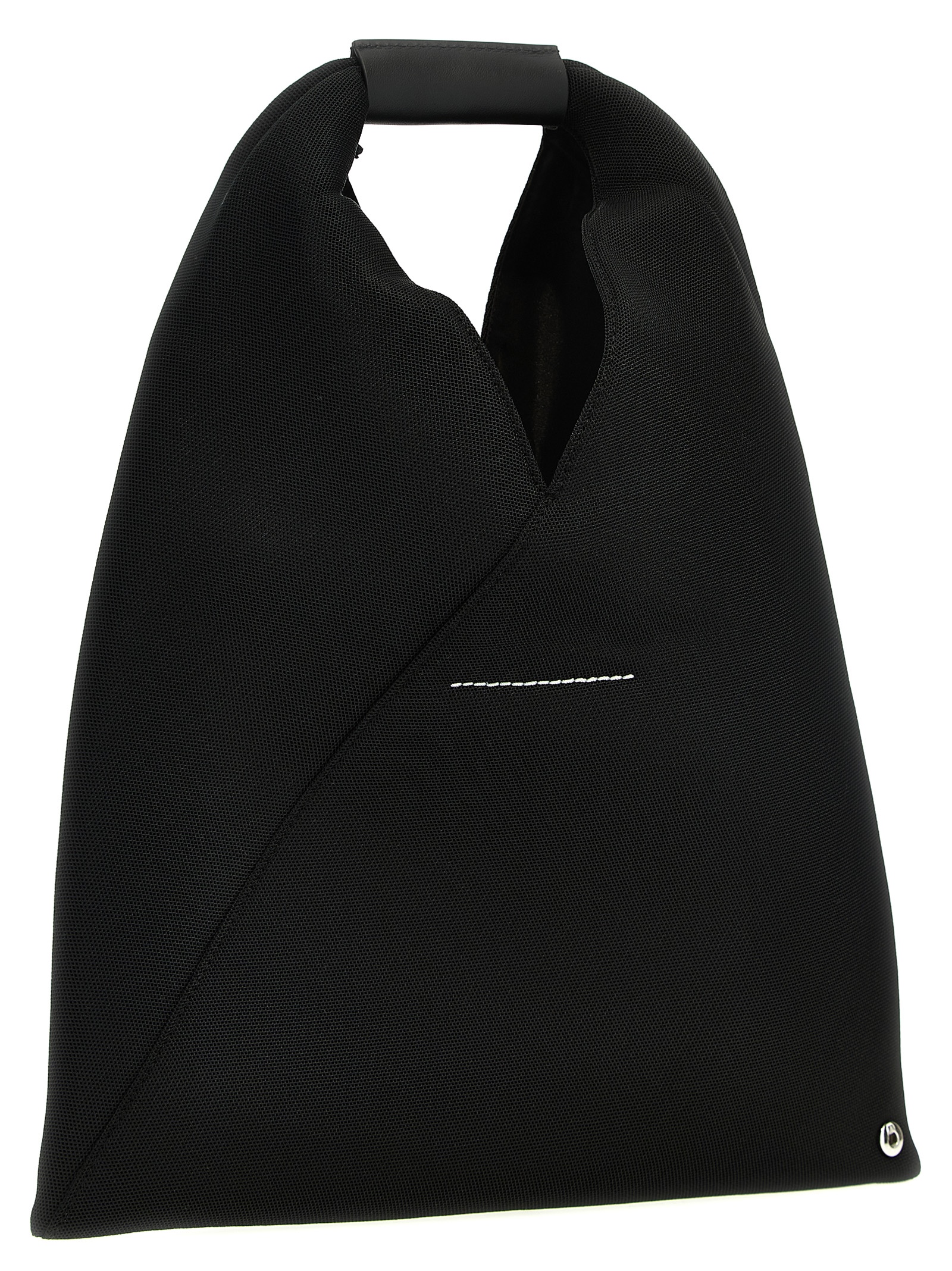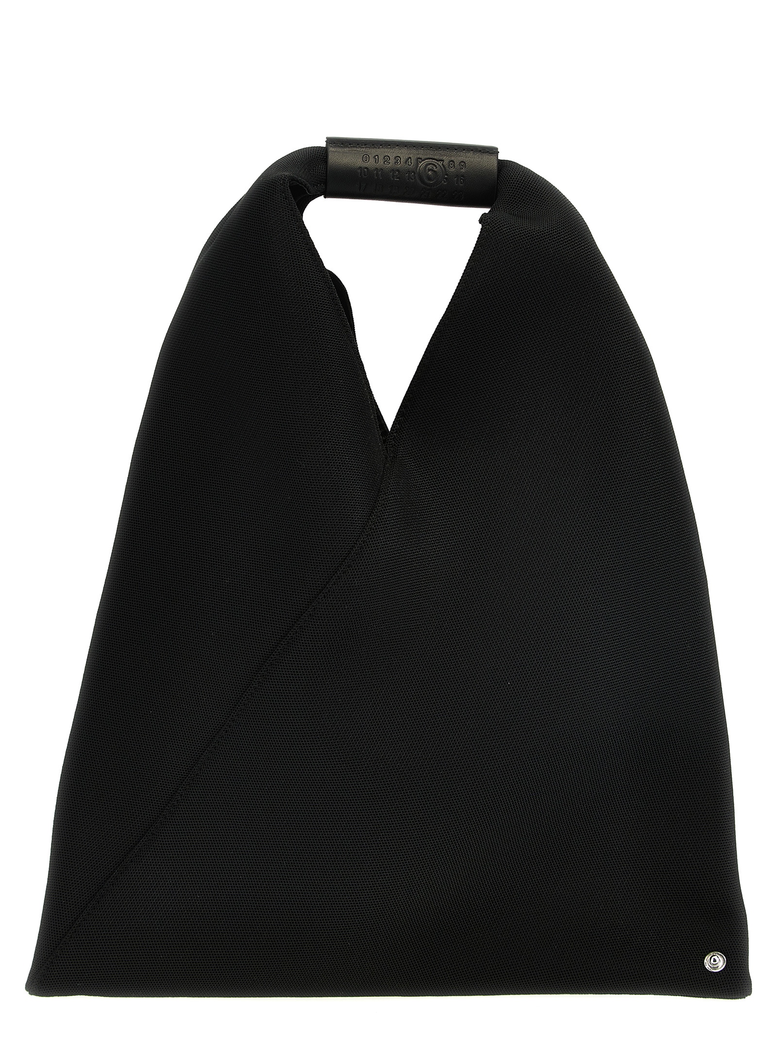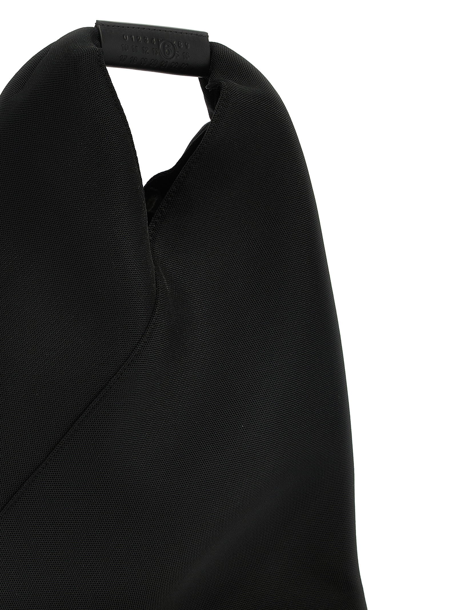 ‘Japanese bag classic small’ shoulder bag in mesh fabric, leather handle.