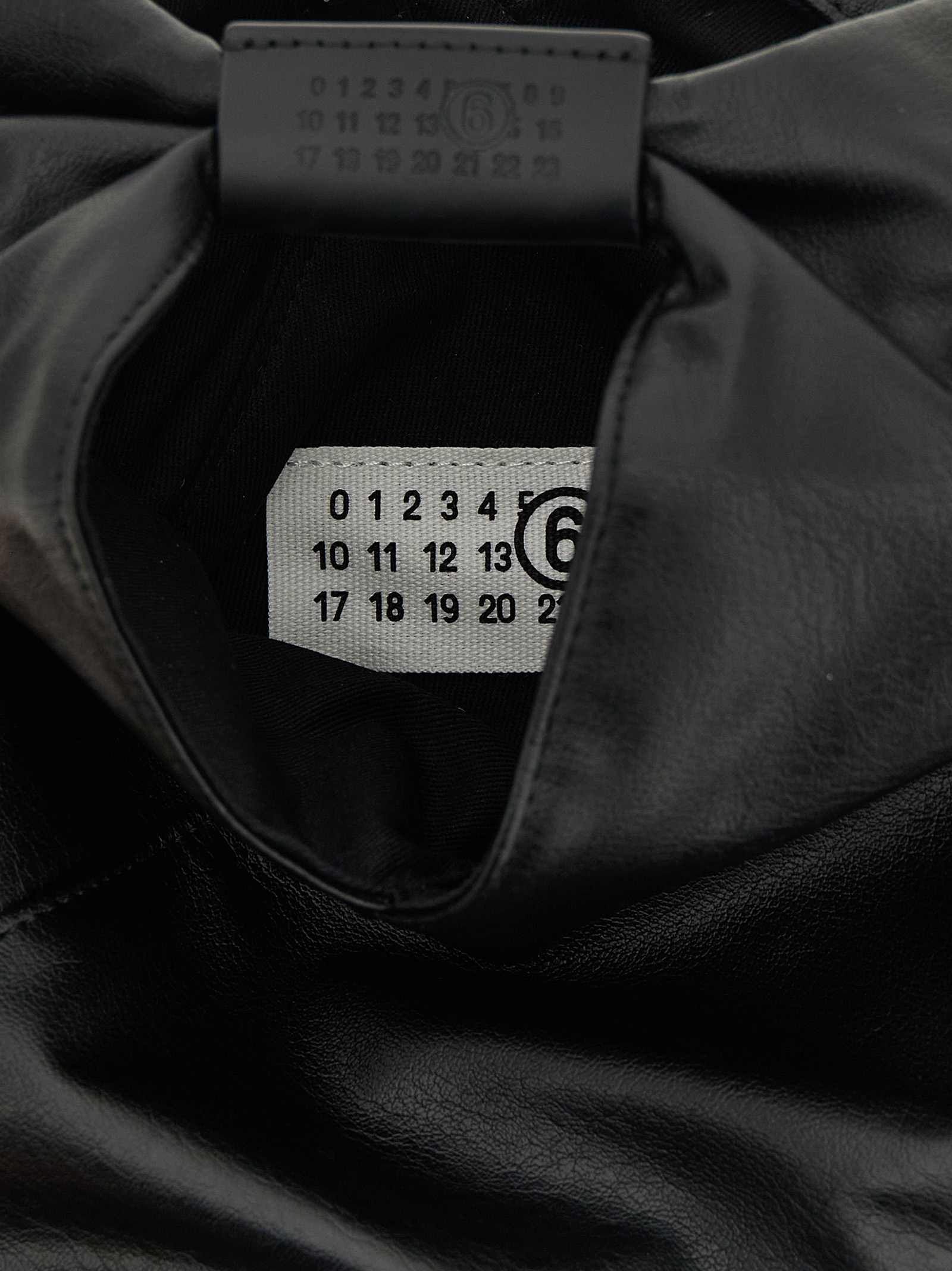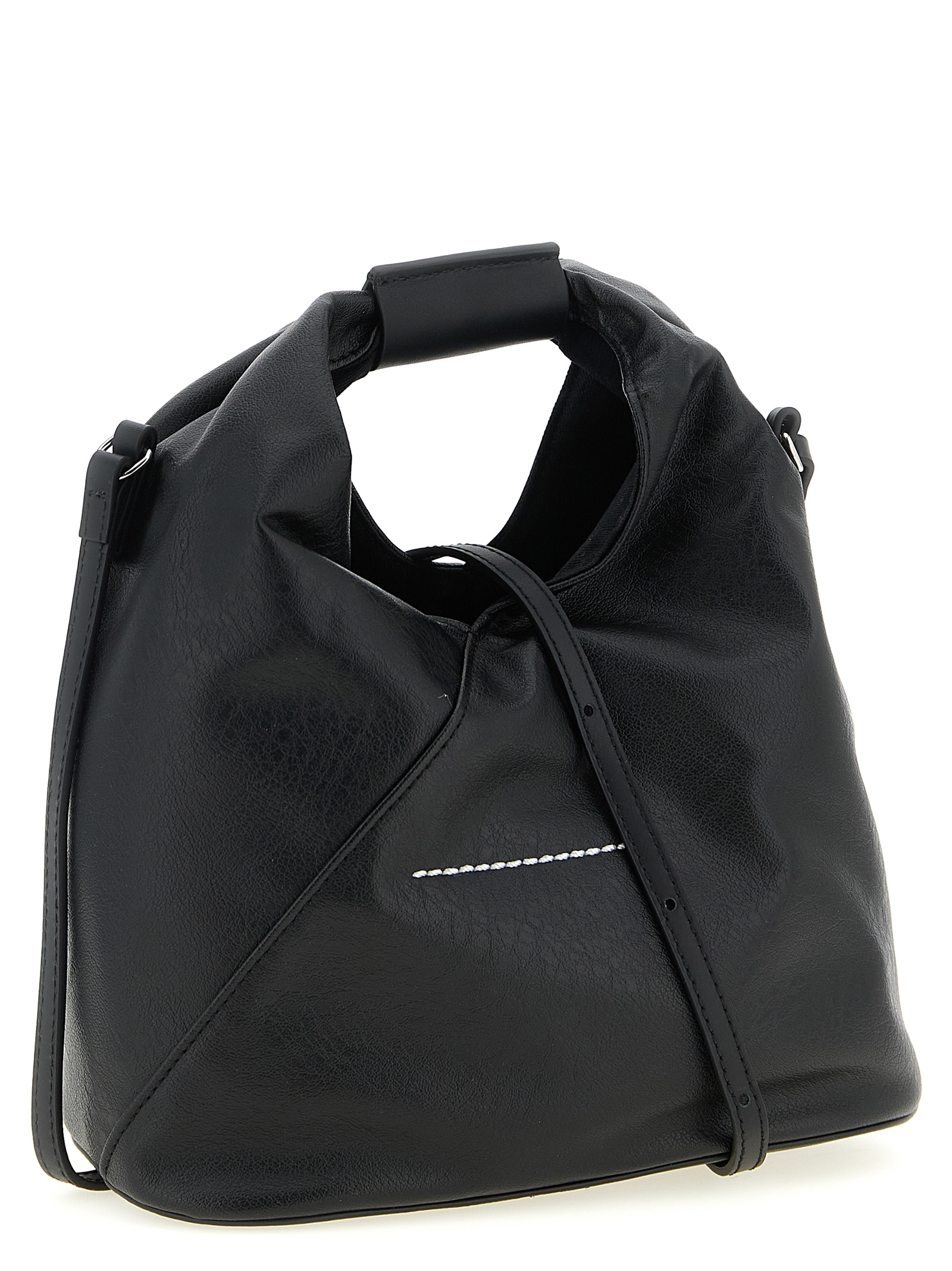 Fine leather ‘Japanese’ crossbody bag, fixed handle with embossed ‘Numeric signature MM6’, internal snap button closure, rear ‘White stitch line’, adjustable and removable shoulder strap.trap.