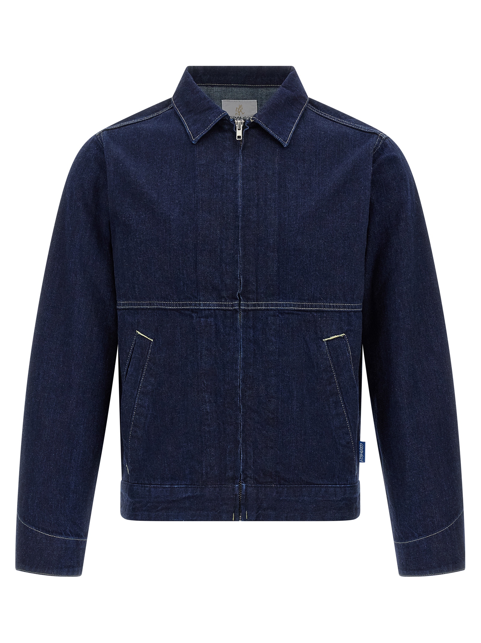 ‘Japanese Slub’ jacket in Japanese Kaihara denim woven with Cordura® nylon, contrast stitching, shirt collar, front zip closure, pockets, long cuffed sleeves.