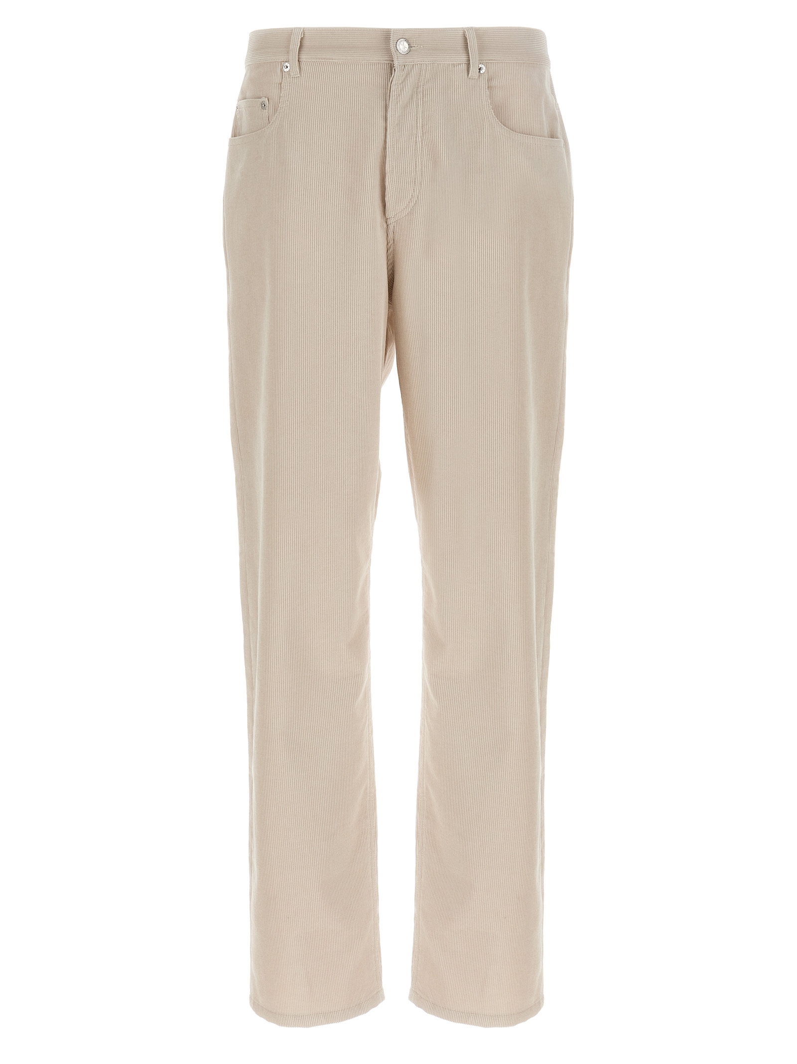 Corduroy pants, 5-pocket model, straight leg, front button closure.