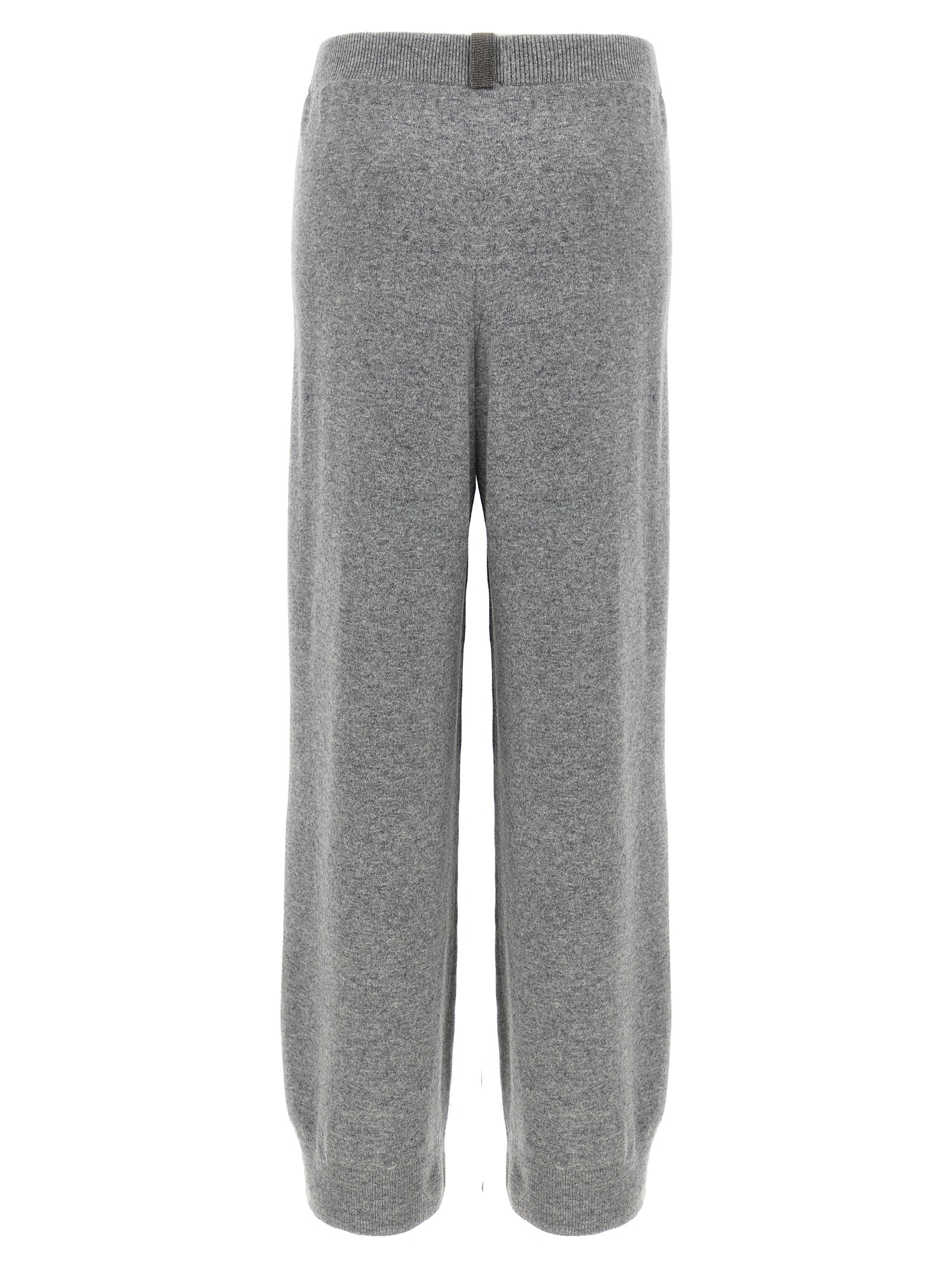 Wool, silk and cashmere blend trousers, elastic waistband with jewel detail at the back, wide and straight leg.