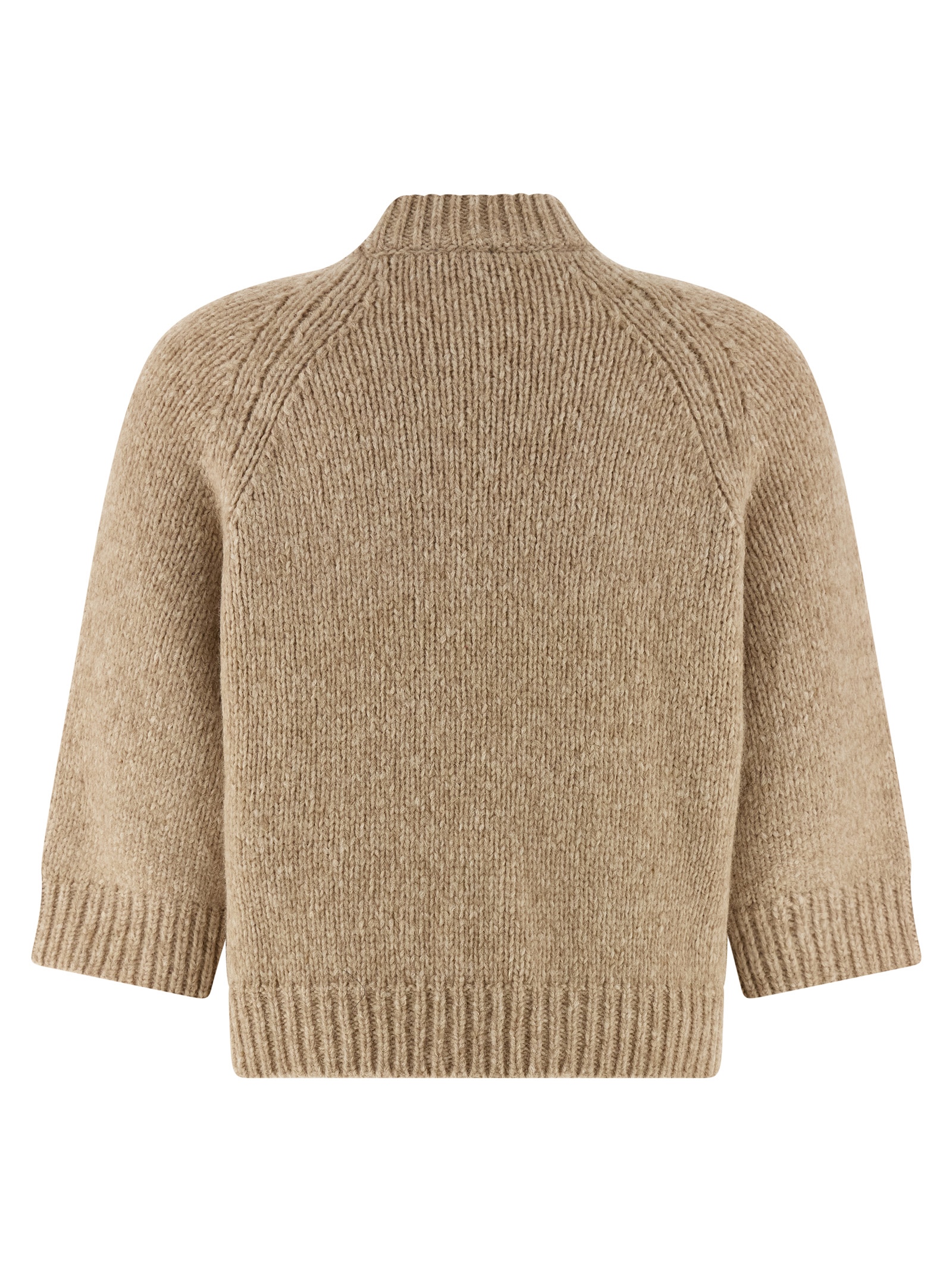 Alpaca and virgin wool blend knitted sweater with diamonds and front jewel details, crew neck, 3/4 cuffed sleeves.