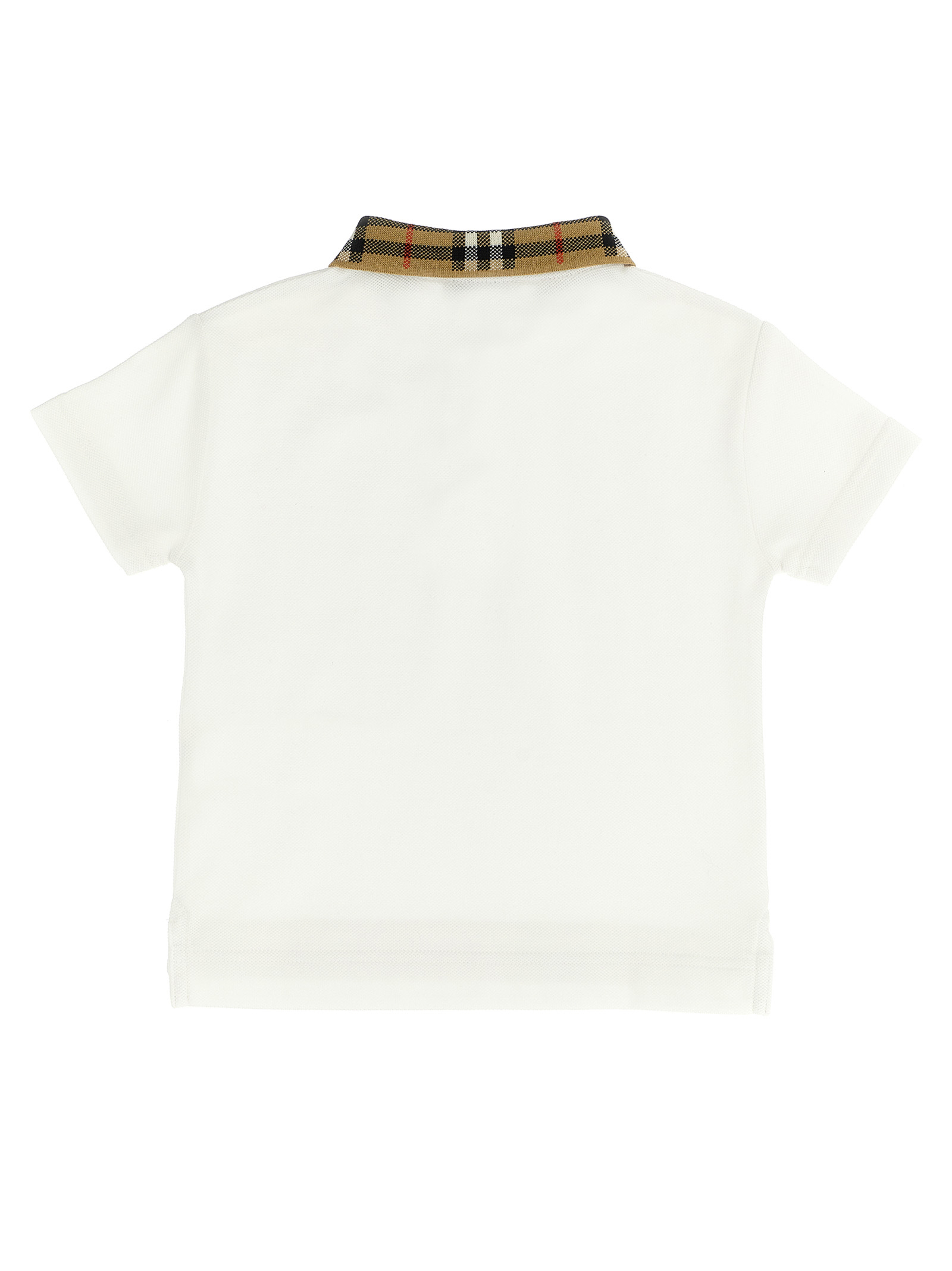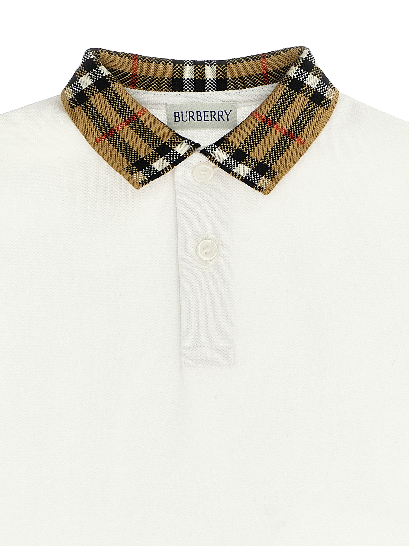 ‘Johane’ cotton piqué polo shirt with Burberry Check collar and buttons, short sleeves, asymmetrical hem, side slits.