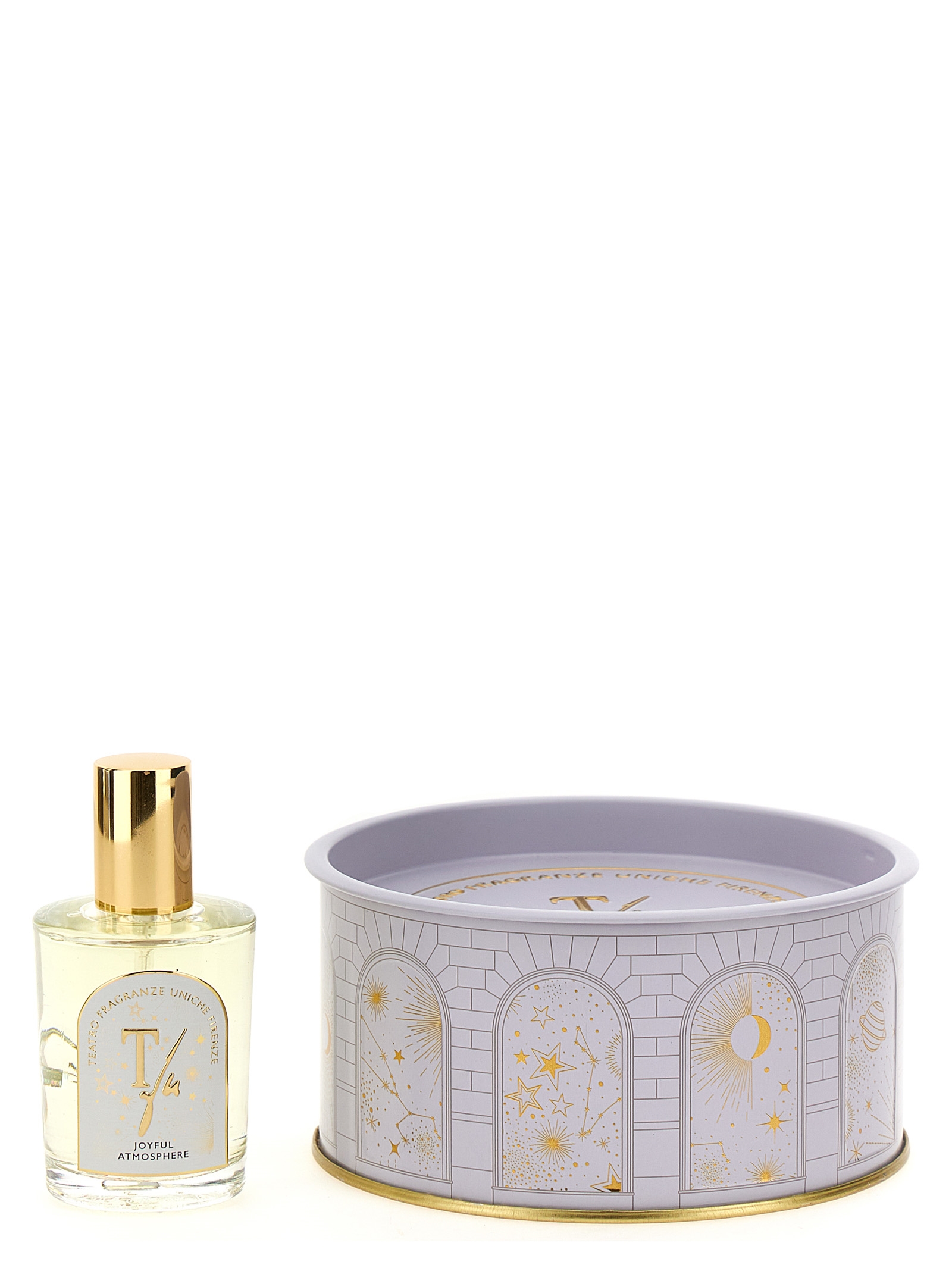 The precious tin gift box contains a Spray with the fragrance Joyful Atmosphere.