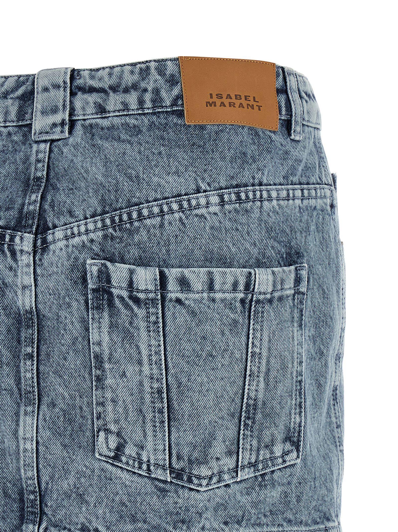 ‘Juana’ cotton denim miniskirt, front zip and button closure, five pockets, back leather logo tag.