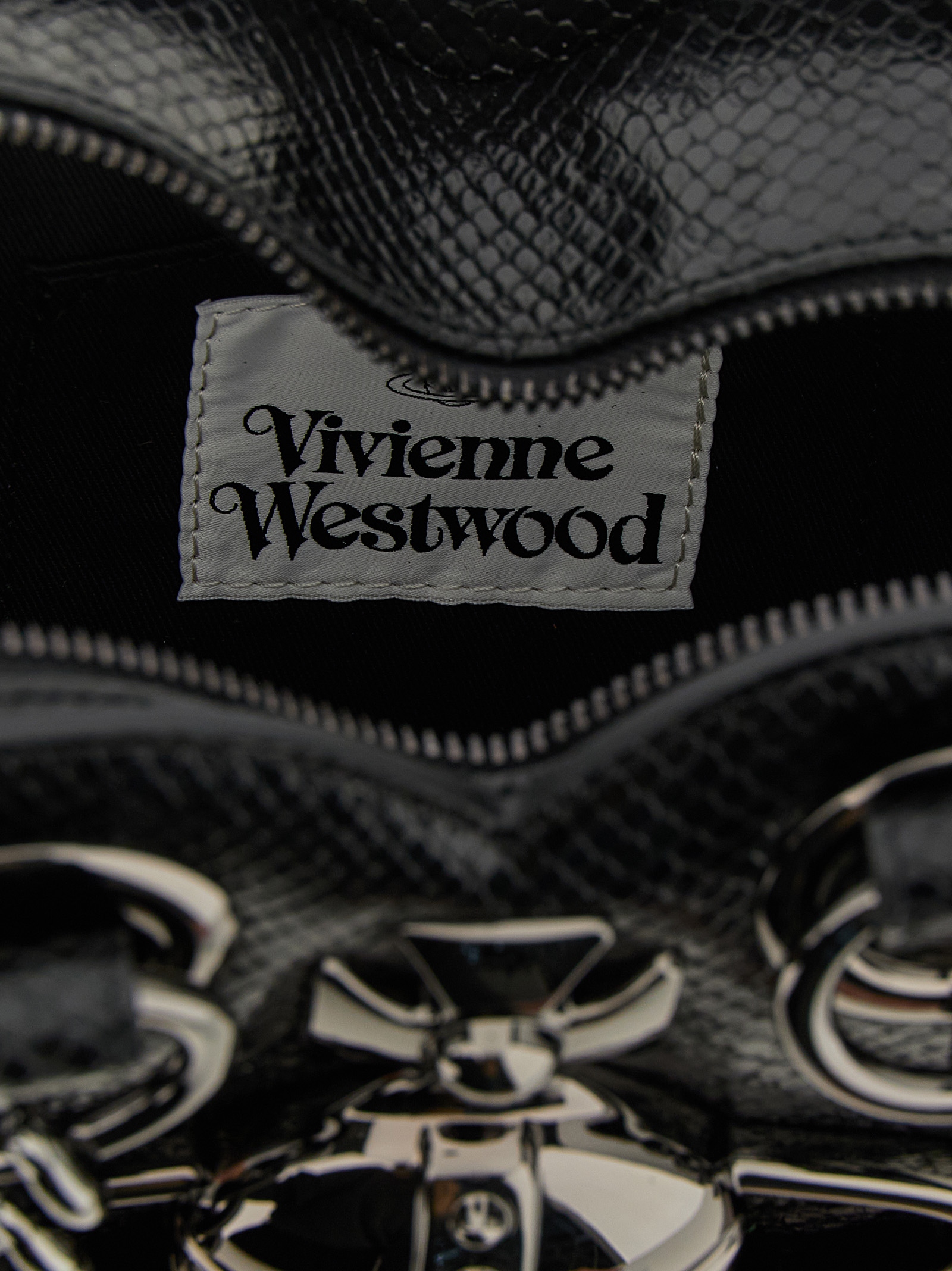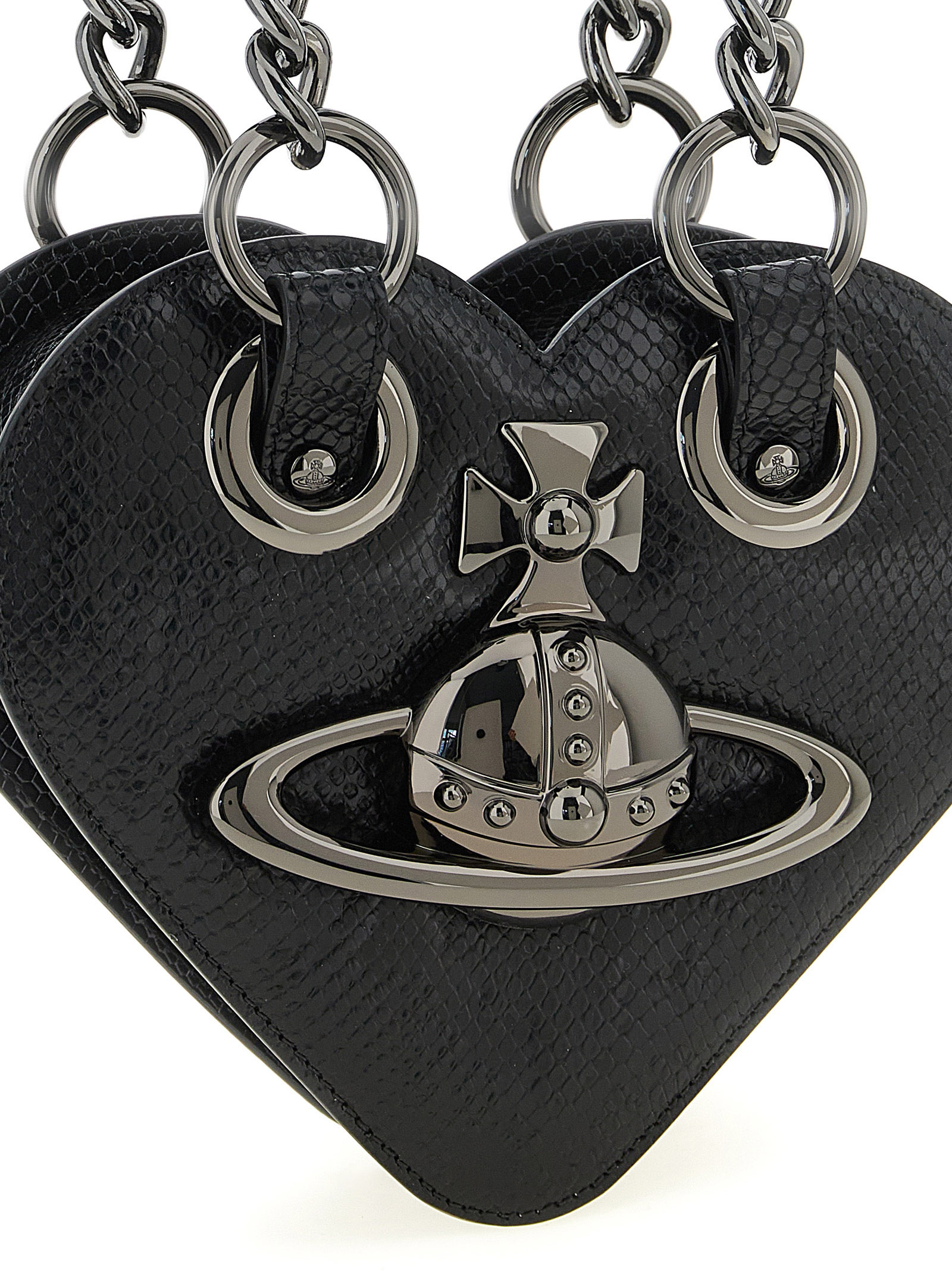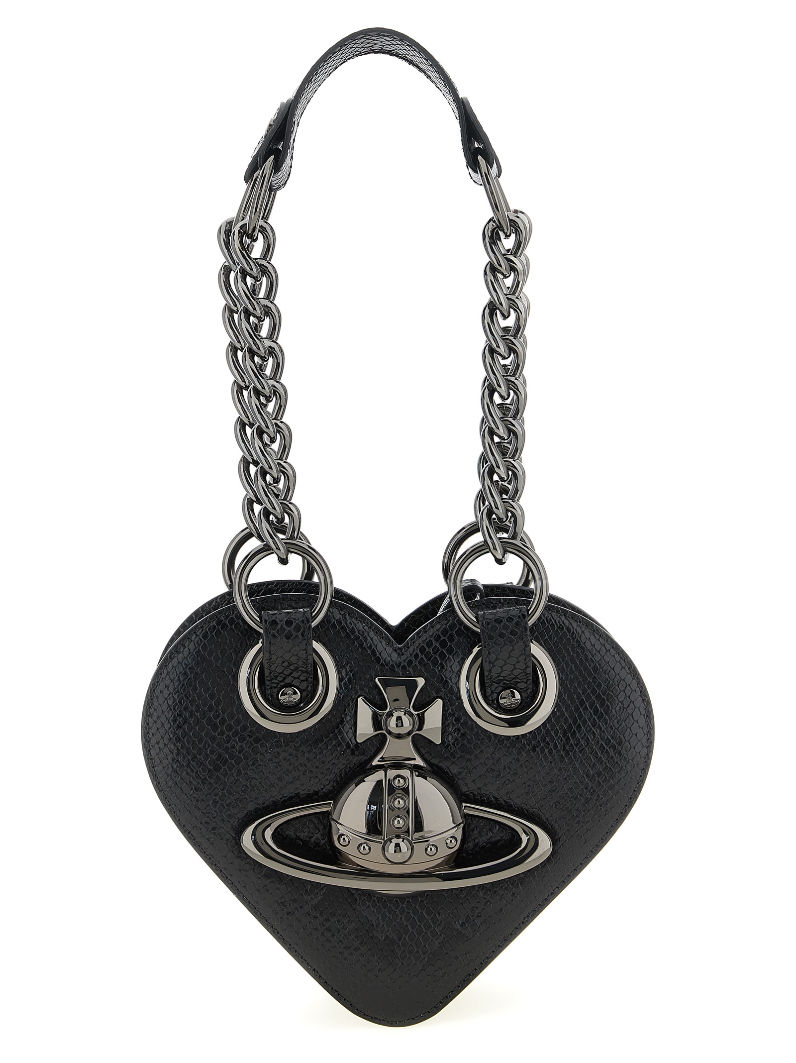 Juliet Heart Chain’ shoulder bag in python-effect embossed leather with details and three-dimensional front Orb logo in polished metal, heart-shaped design, double chain handle with fixed leather protection, top zip closure.